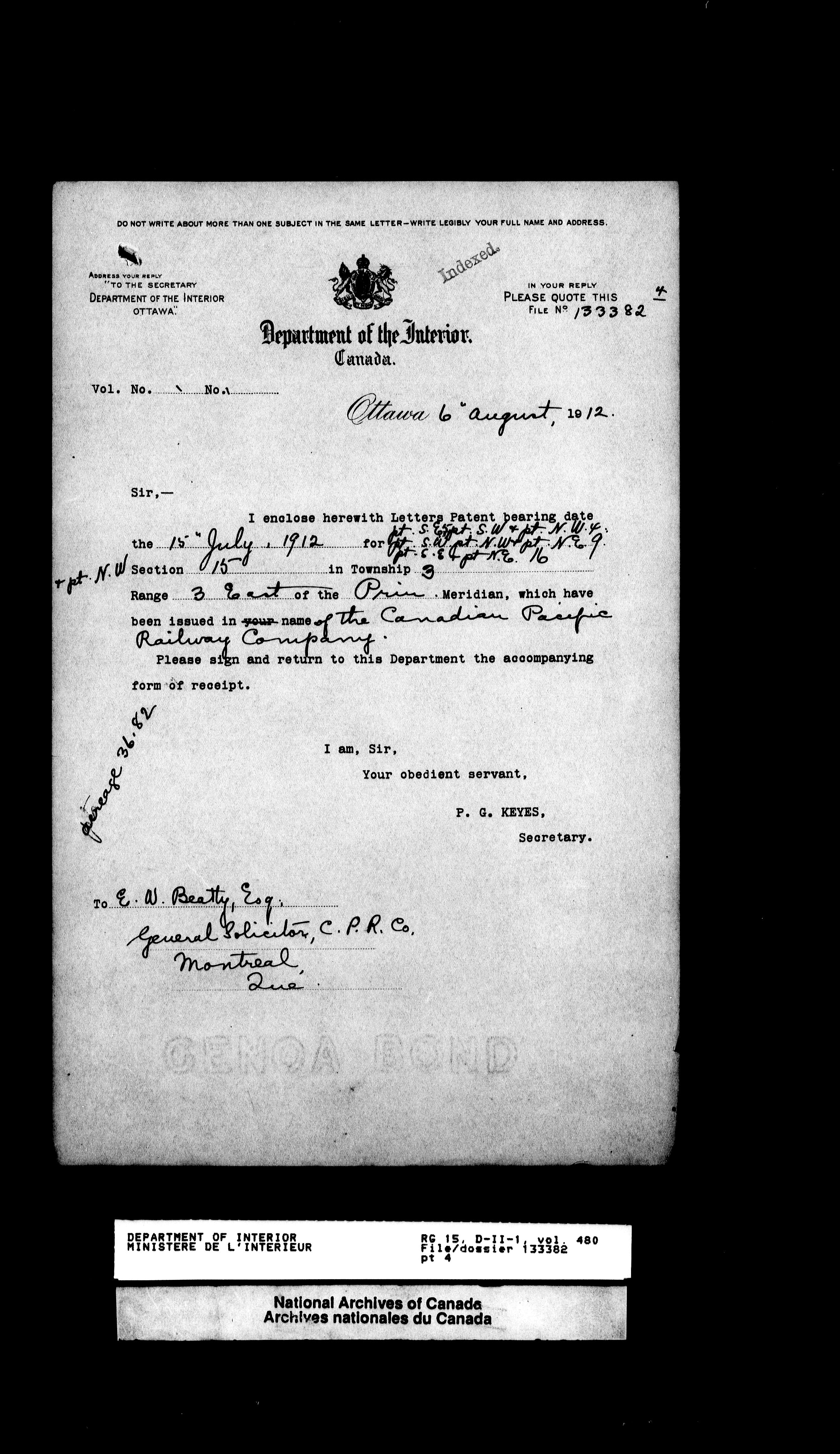 Central registry subject files created by the Dominion Lands Branch - 13161