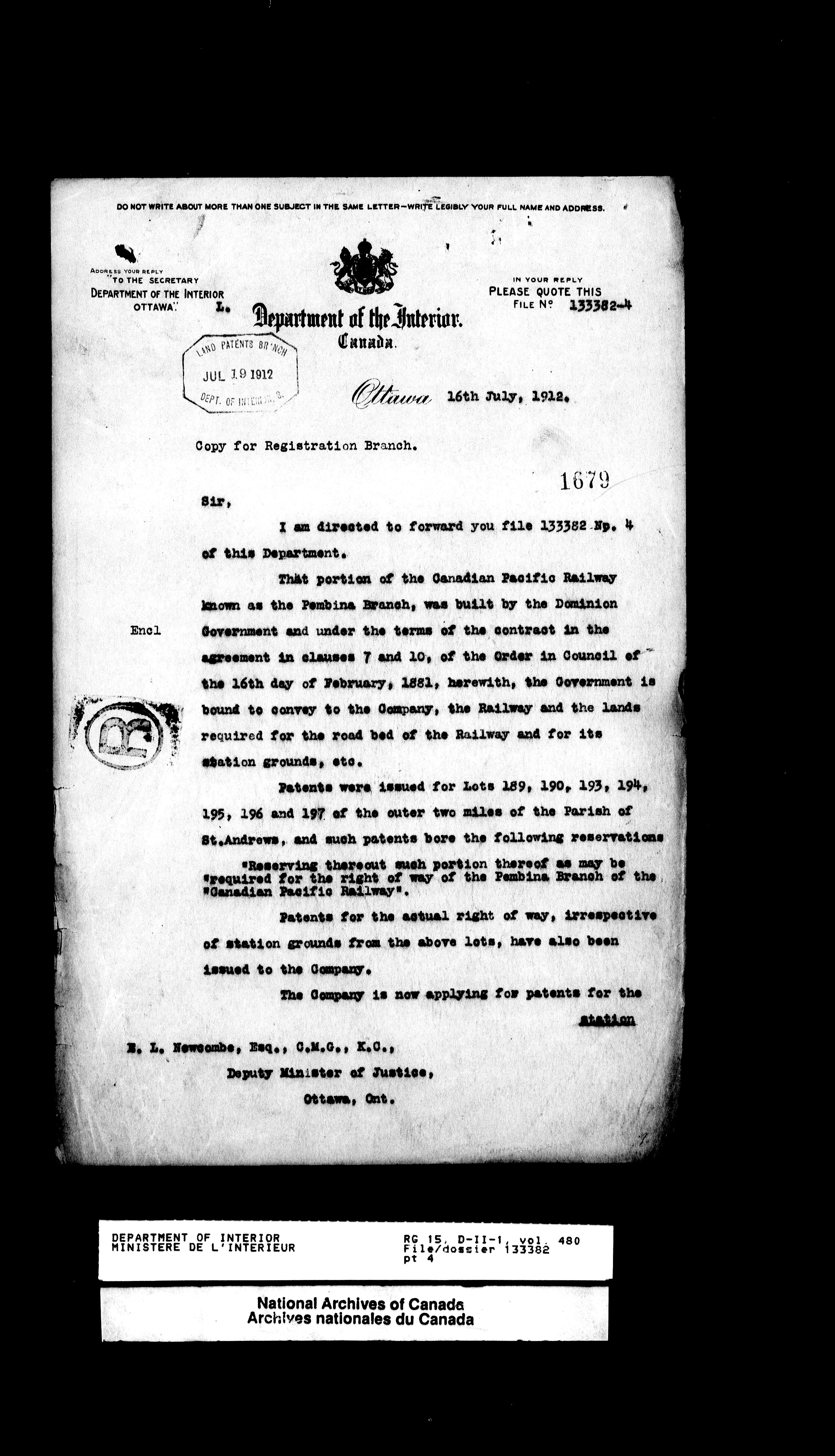 Central registry subject files created by the Dominion Lands Branch - 13161