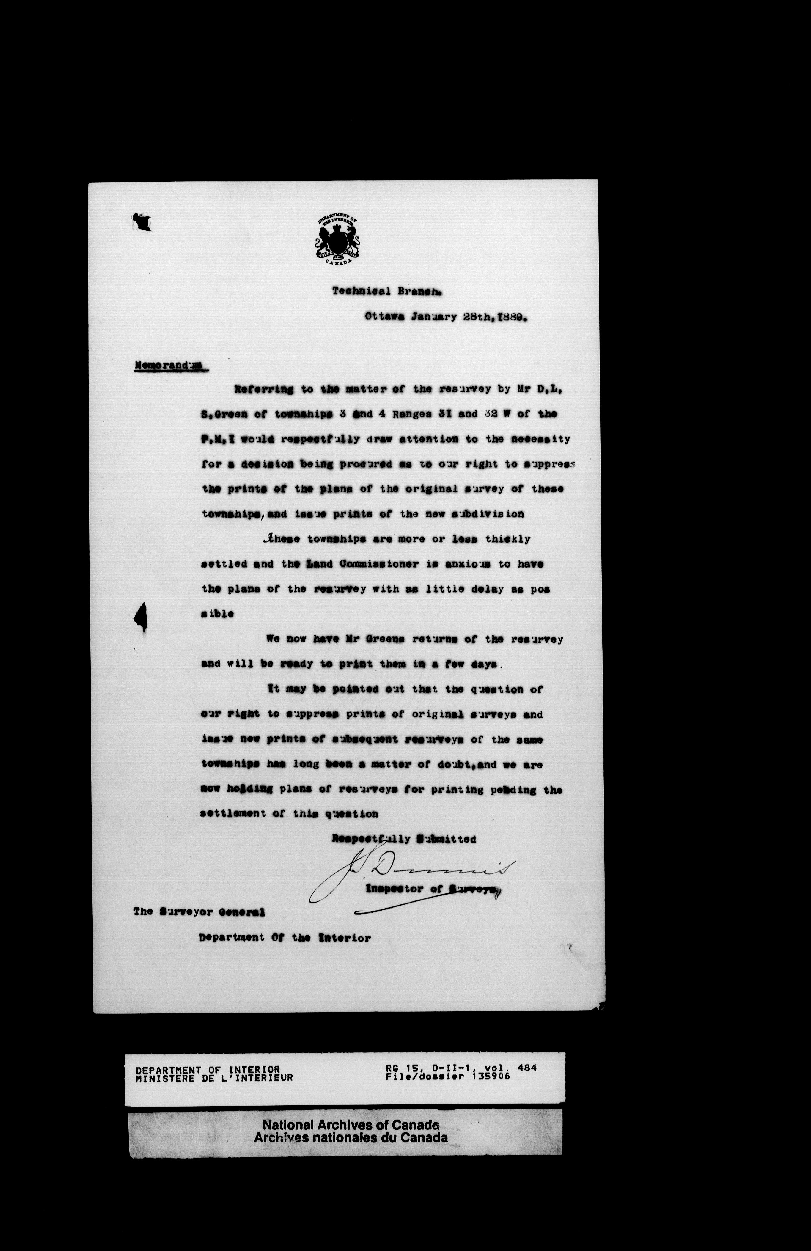 Central registry subject files created by the Dominion Lands Branch - 13165