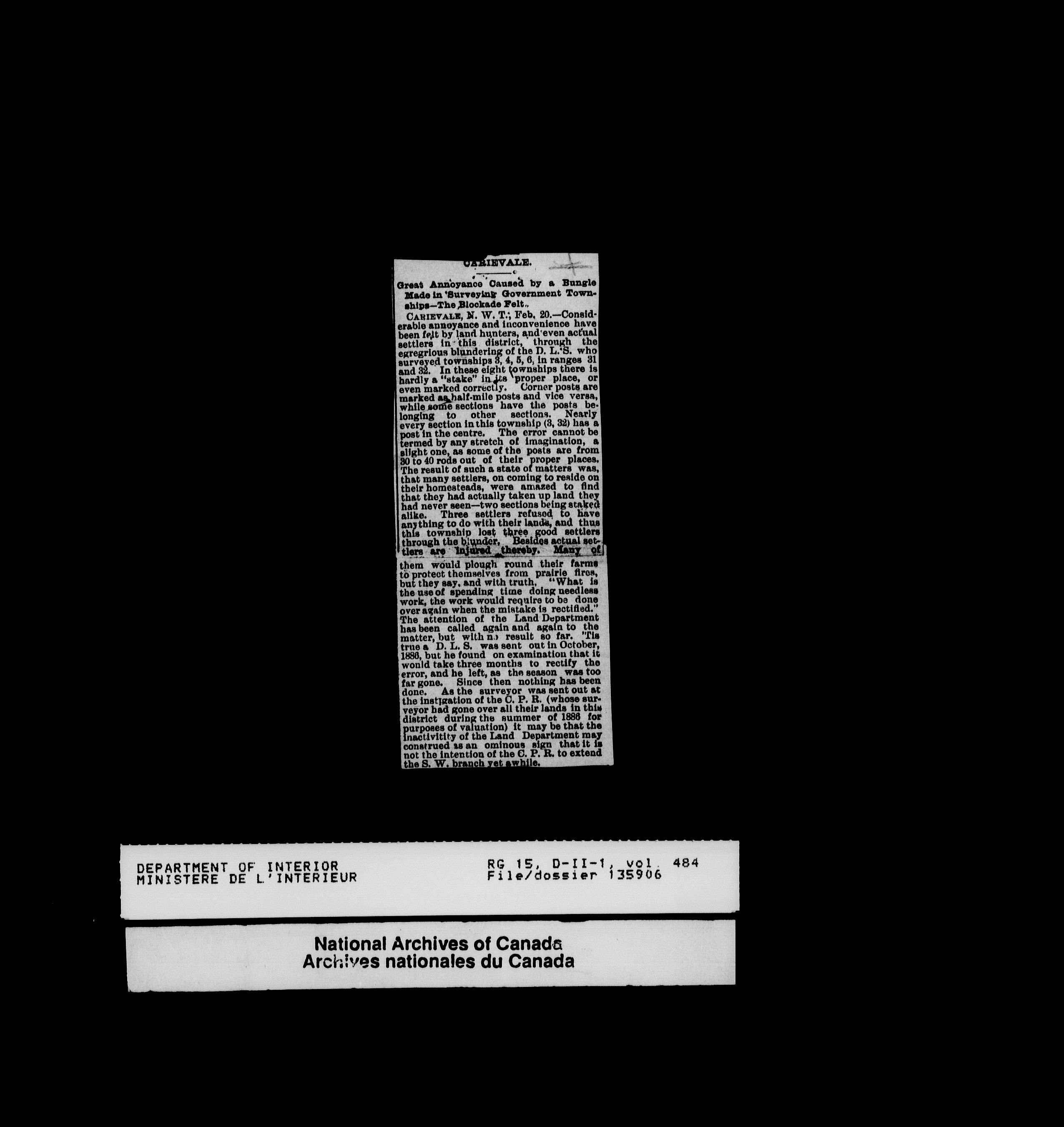 Central registry subject files created by the Dominion Lands Branch - 13165