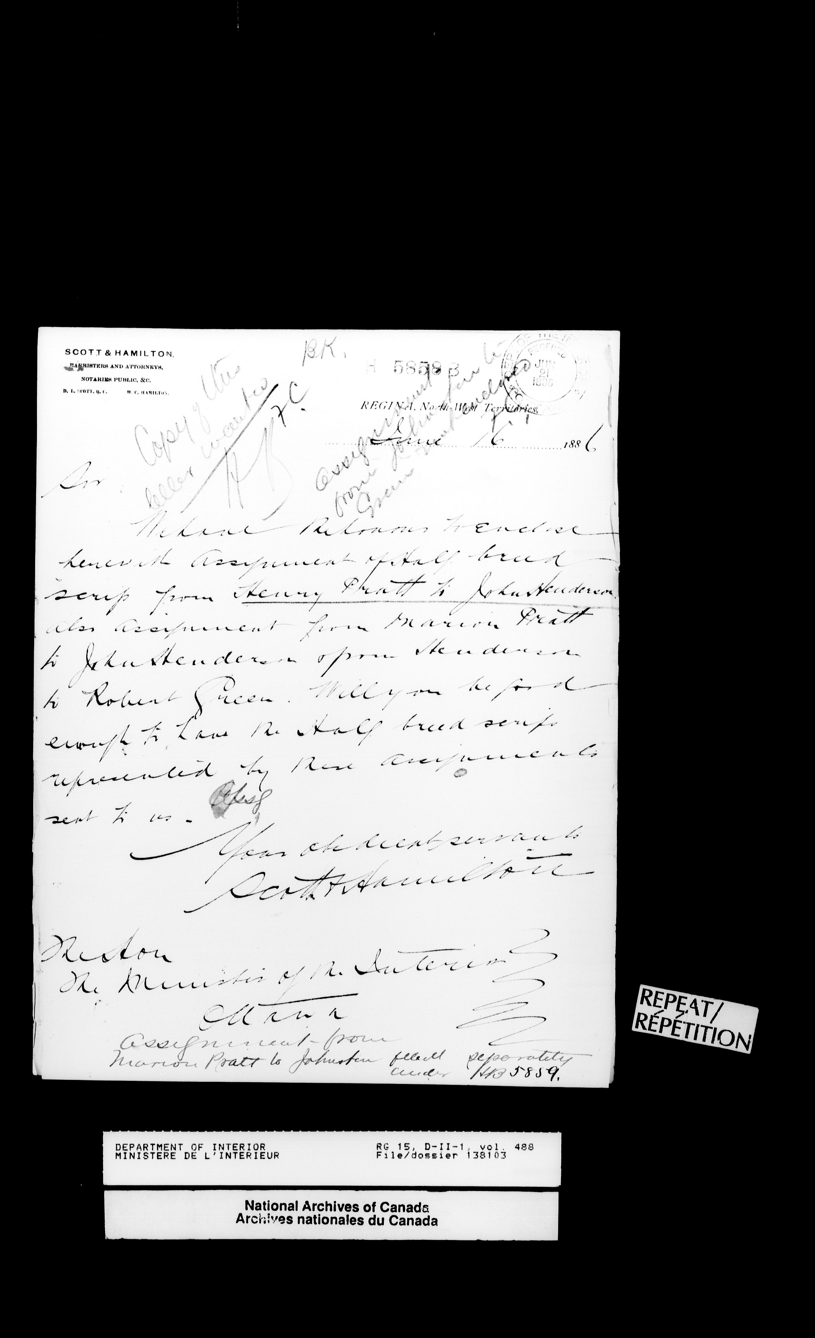 Central registry subject files created by the Dominion Lands Branch - 13167