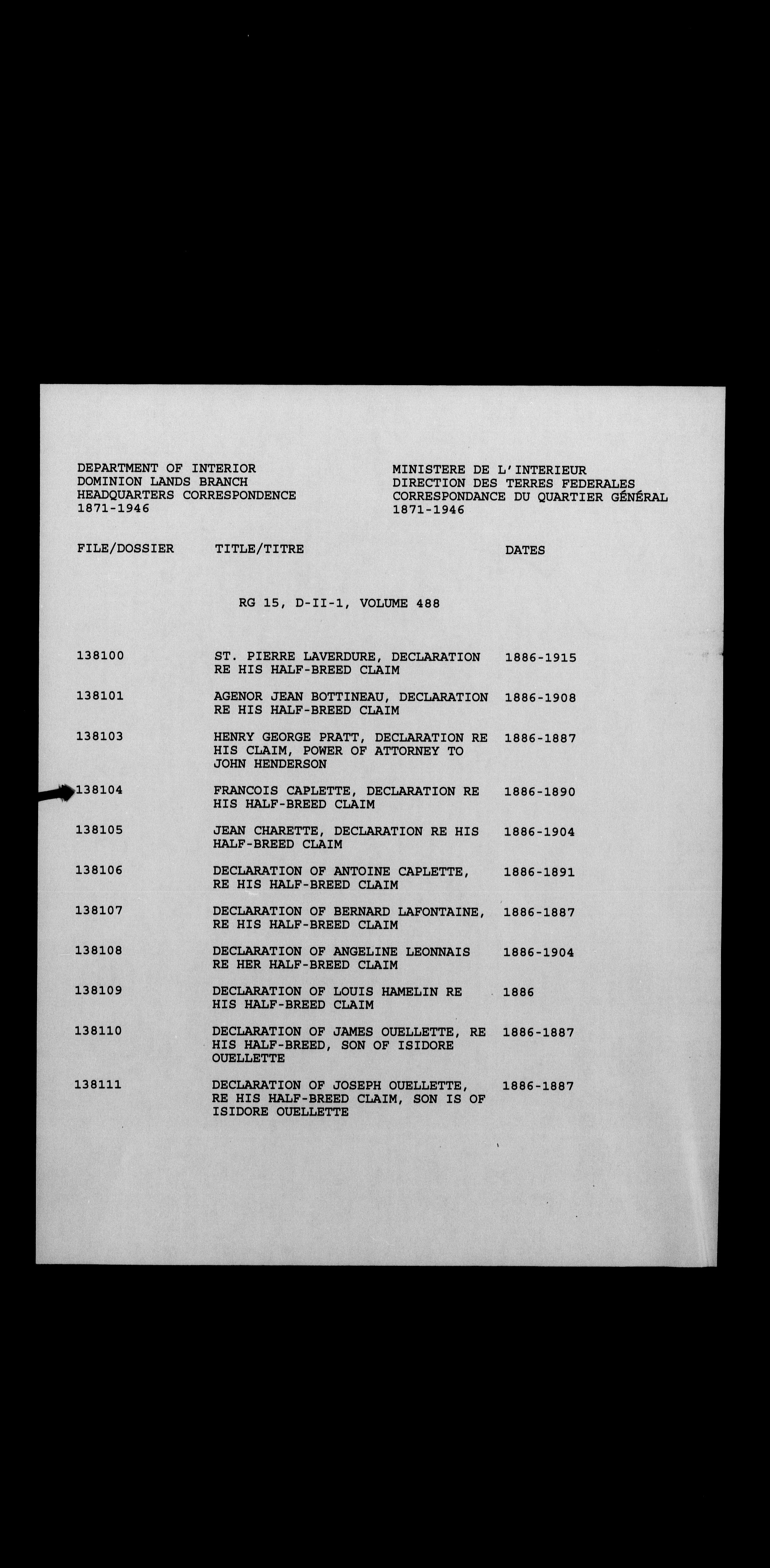 Central registry subject files created by the Dominion Lands Branch - 13167