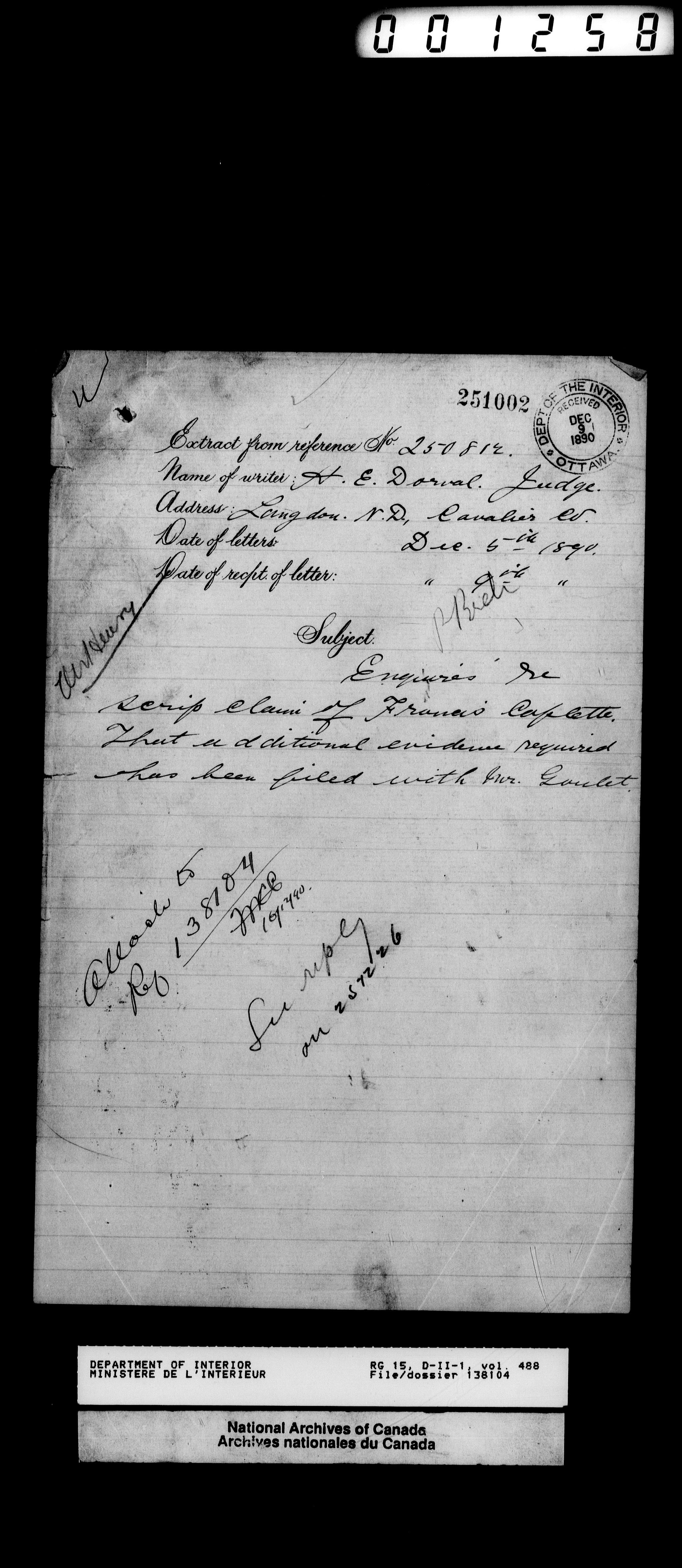 Central registry subject files created by the Dominion Lands Branch - 13167