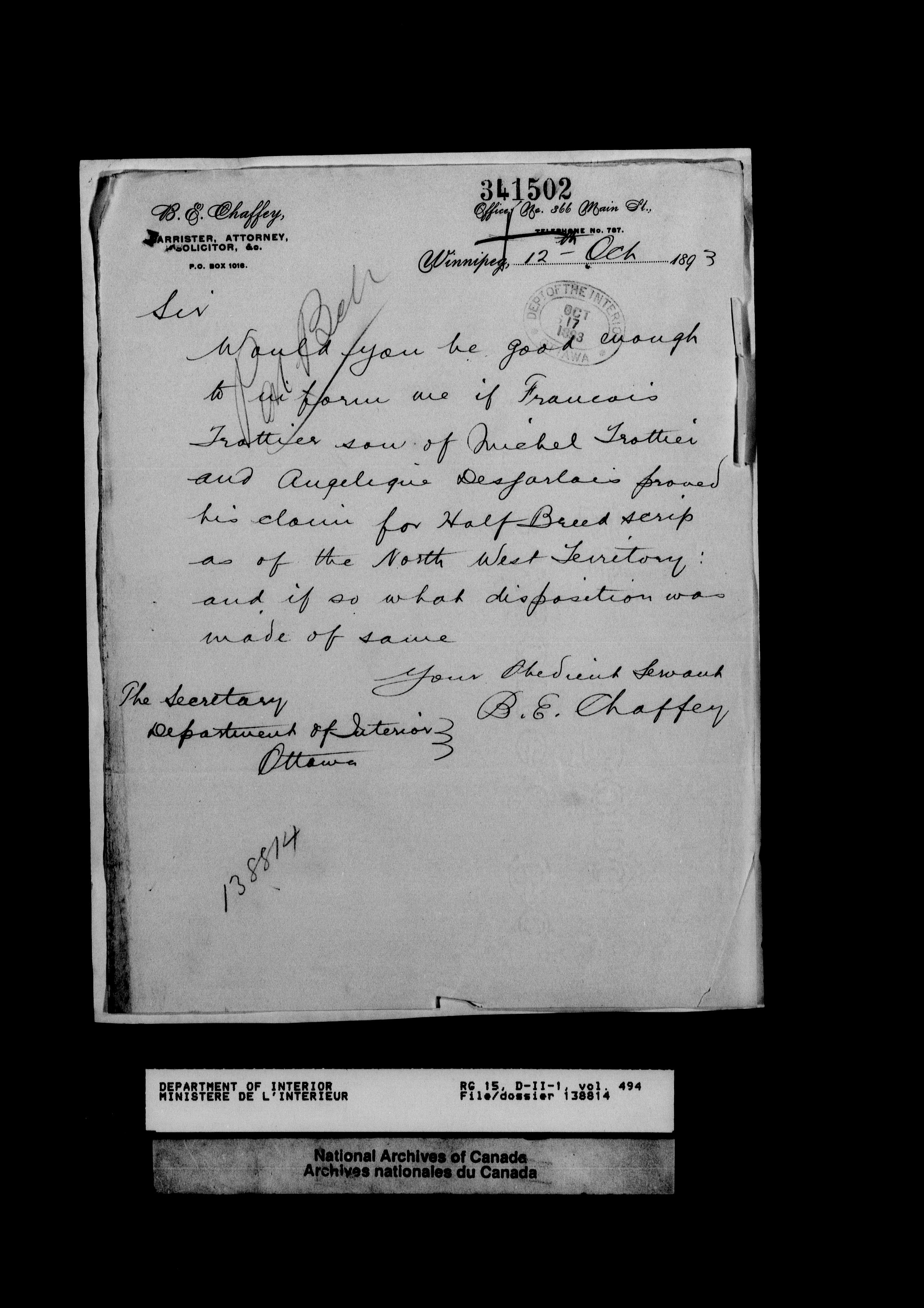 Central registry subject files created by the Dominion Lands Branch - 13173
