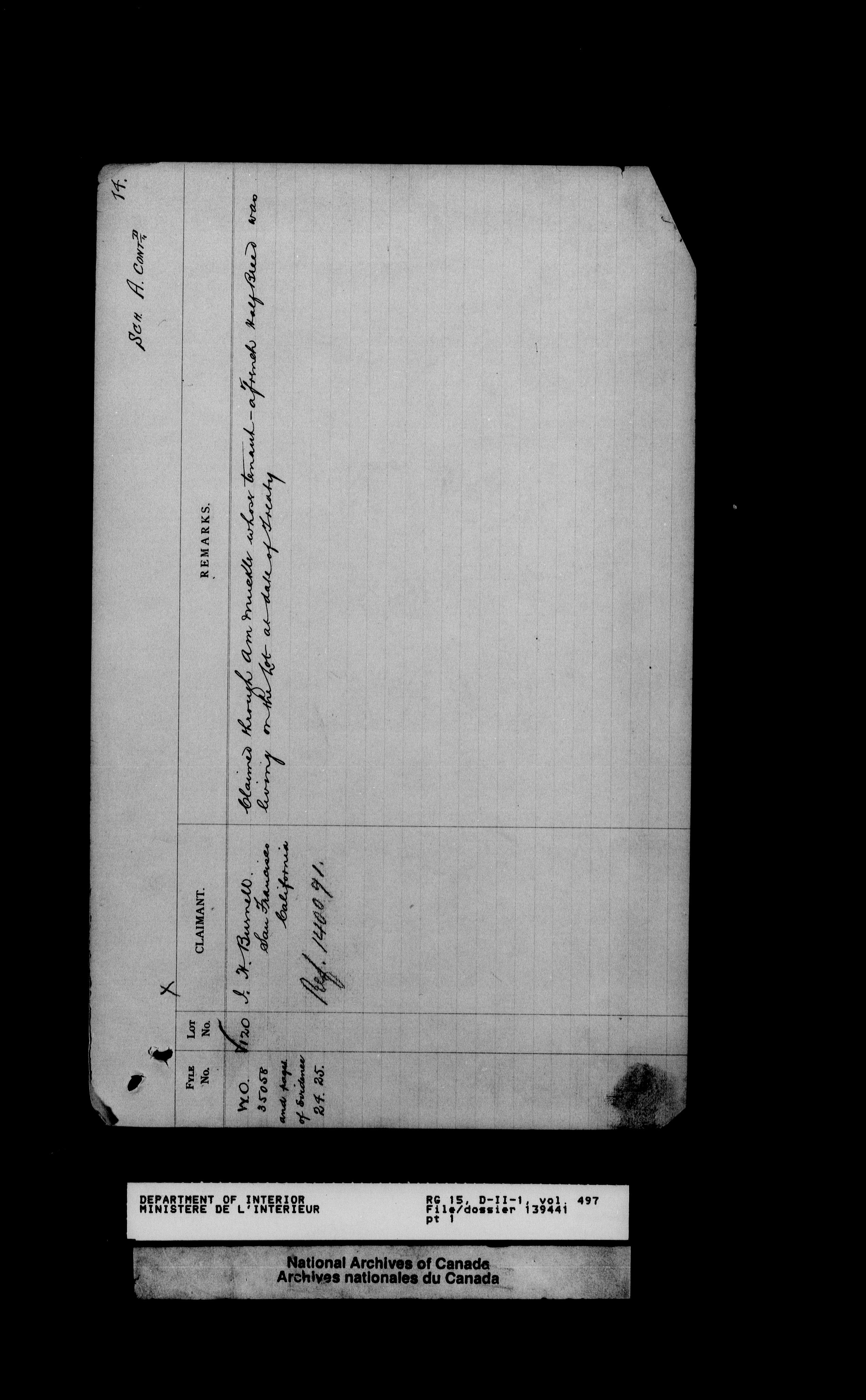 Central registry subject files created by the Dominion Lands Branch - 13176