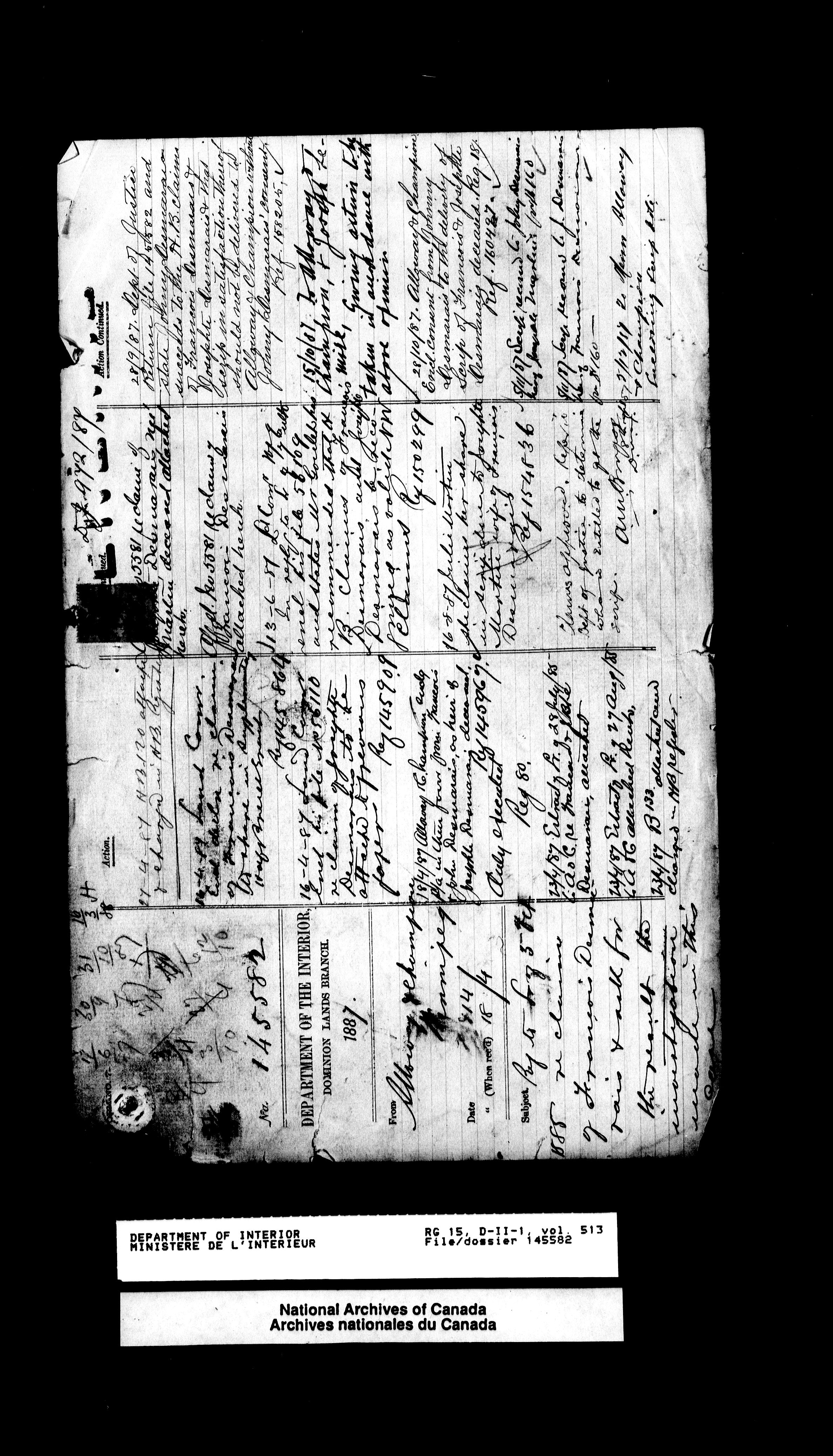 Central registry subject files created by the Dominion Lands Branch - 13189