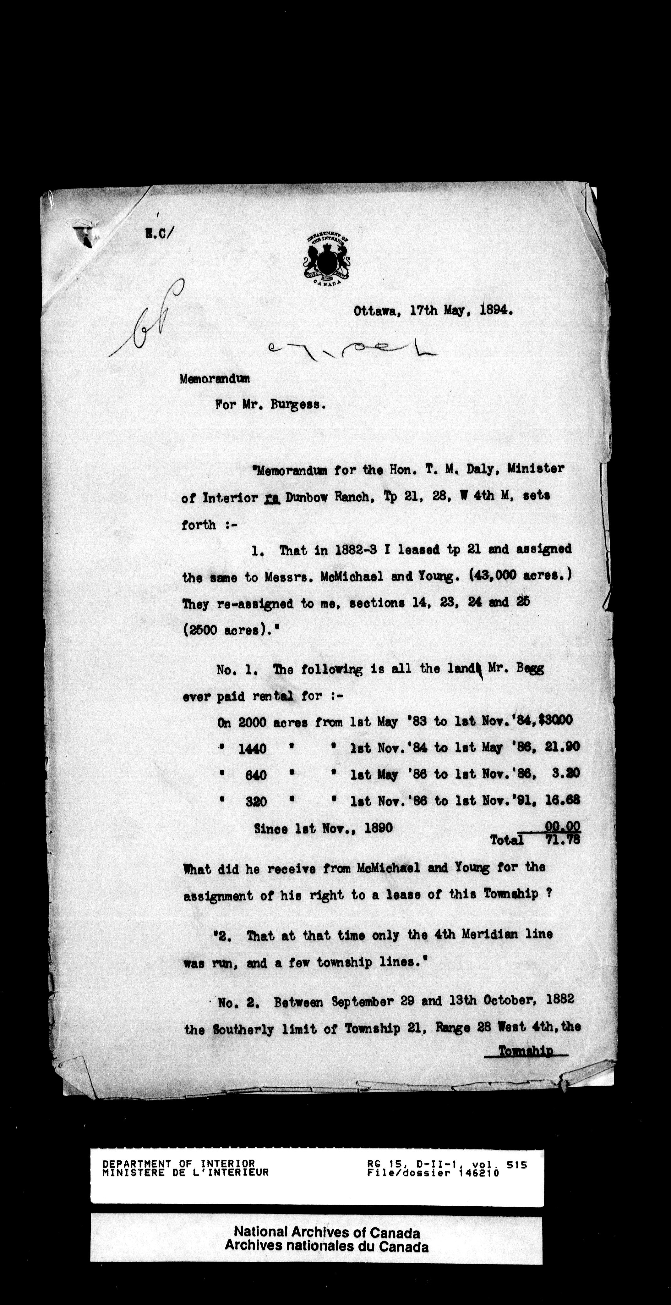 Central registry subject files created by the Dominion Lands Branch - 13190