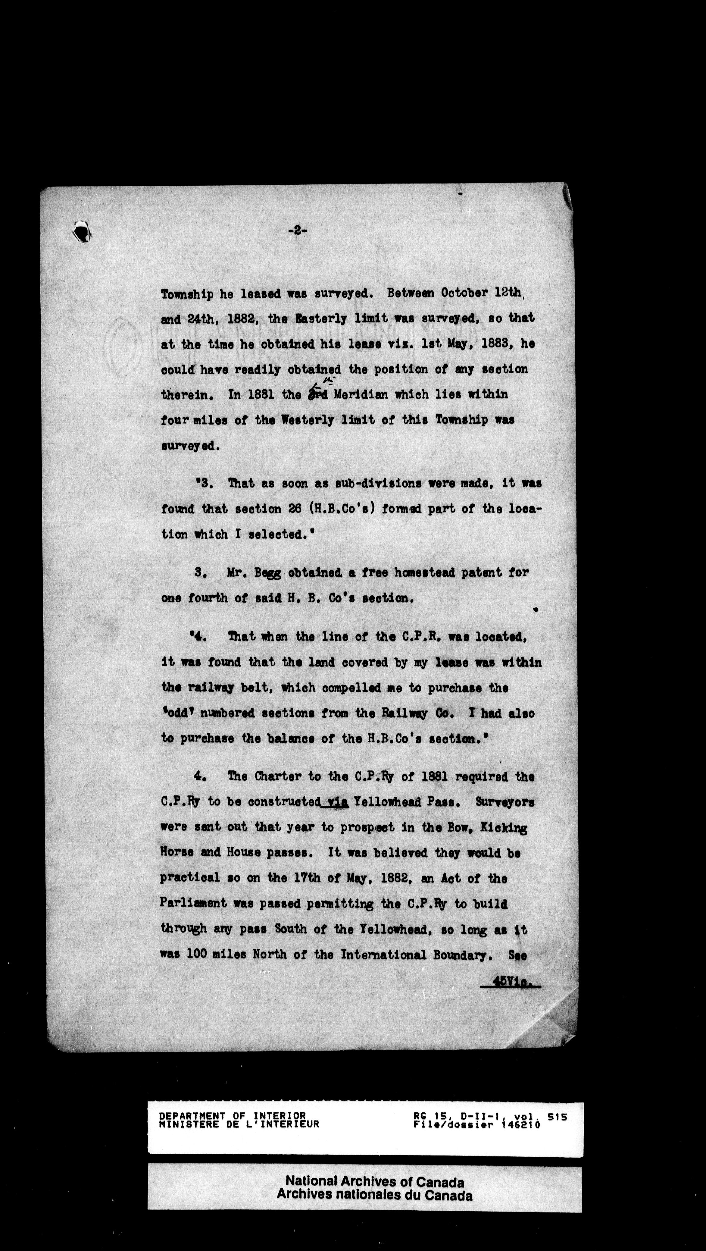 Central registry subject files created by the Dominion Lands Branch - 13190