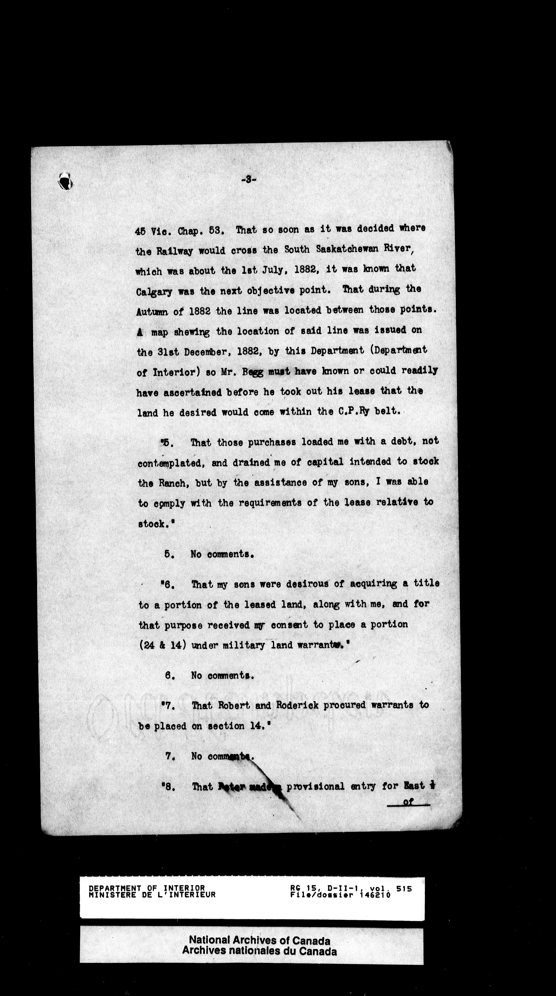 Central registry subject files created by the Dominion Lands Branch - 13190