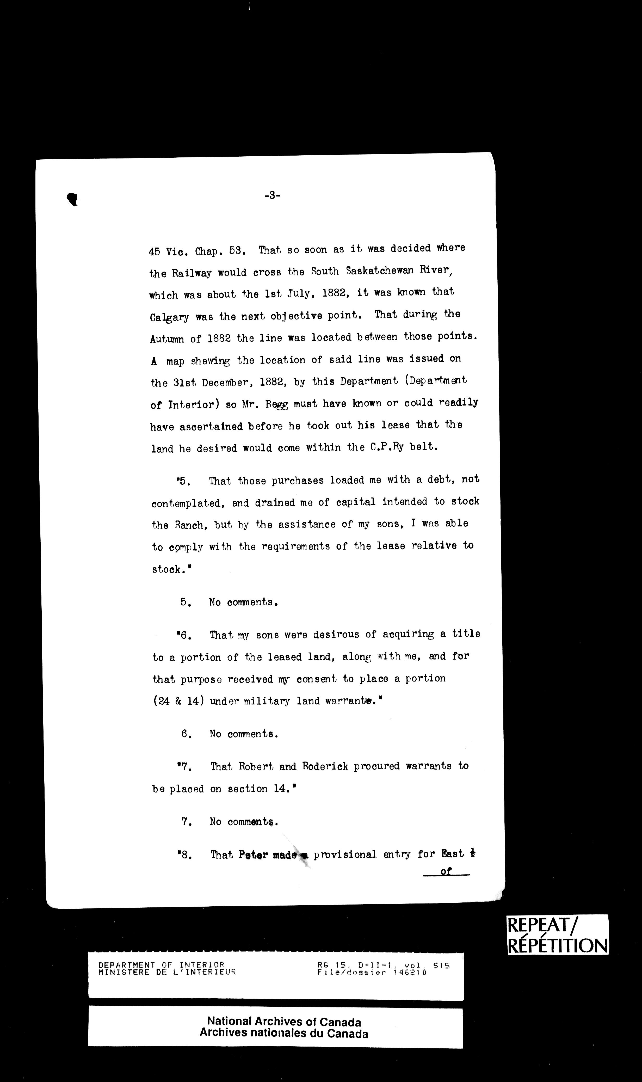 Central registry subject files created by the Dominion Lands Branch - 13190