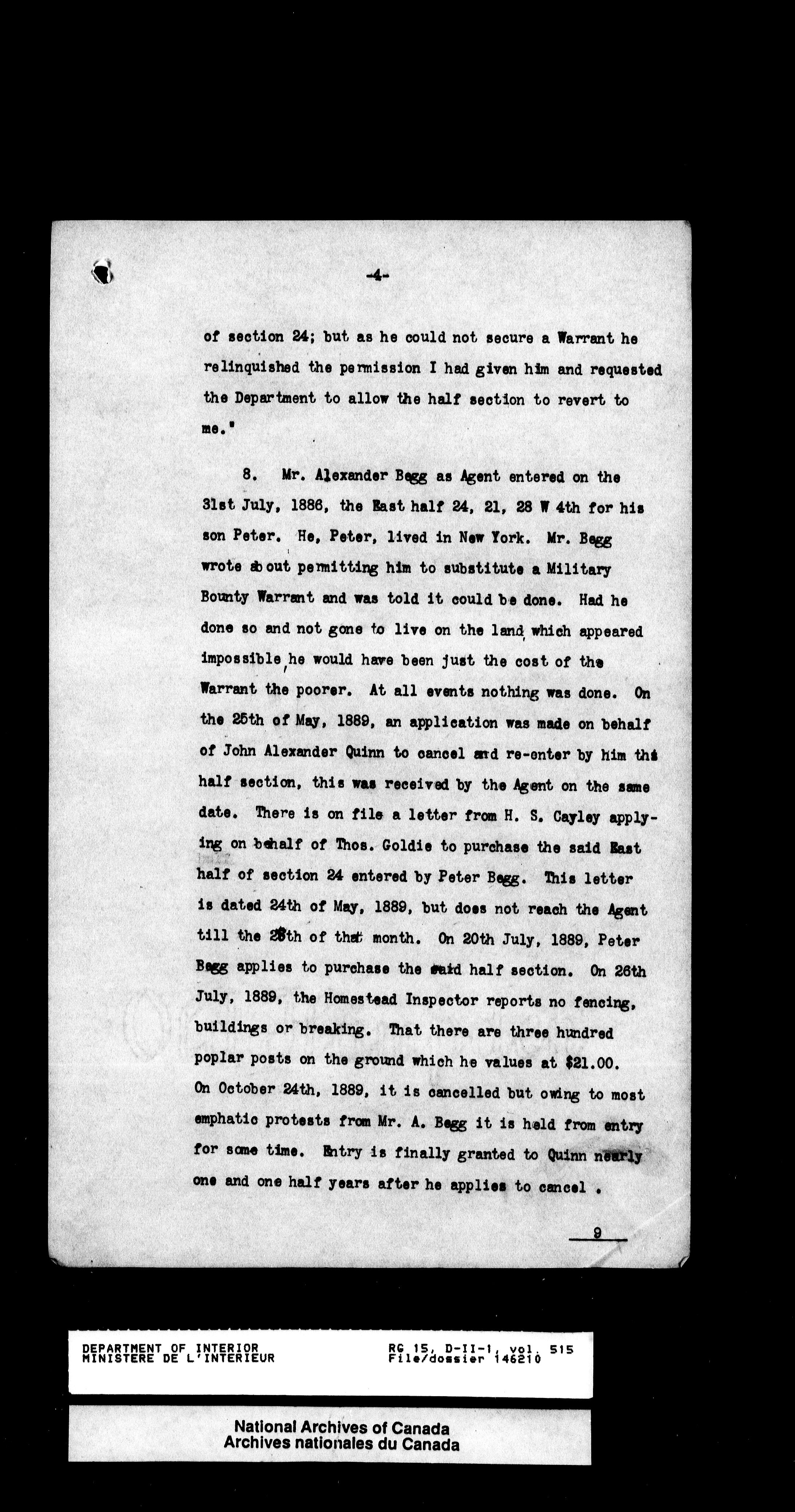 Central registry subject files created by the Dominion Lands Branch - 13190