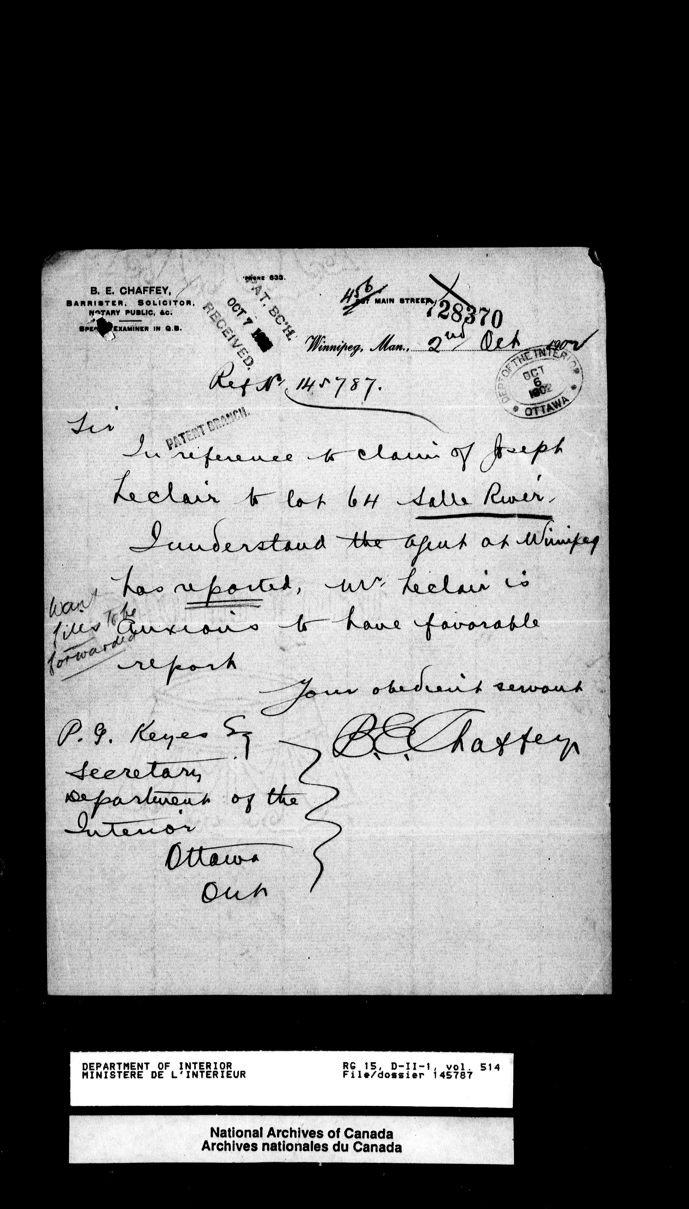 Central registry subject files created by the Dominion Lands Branch - 13190
