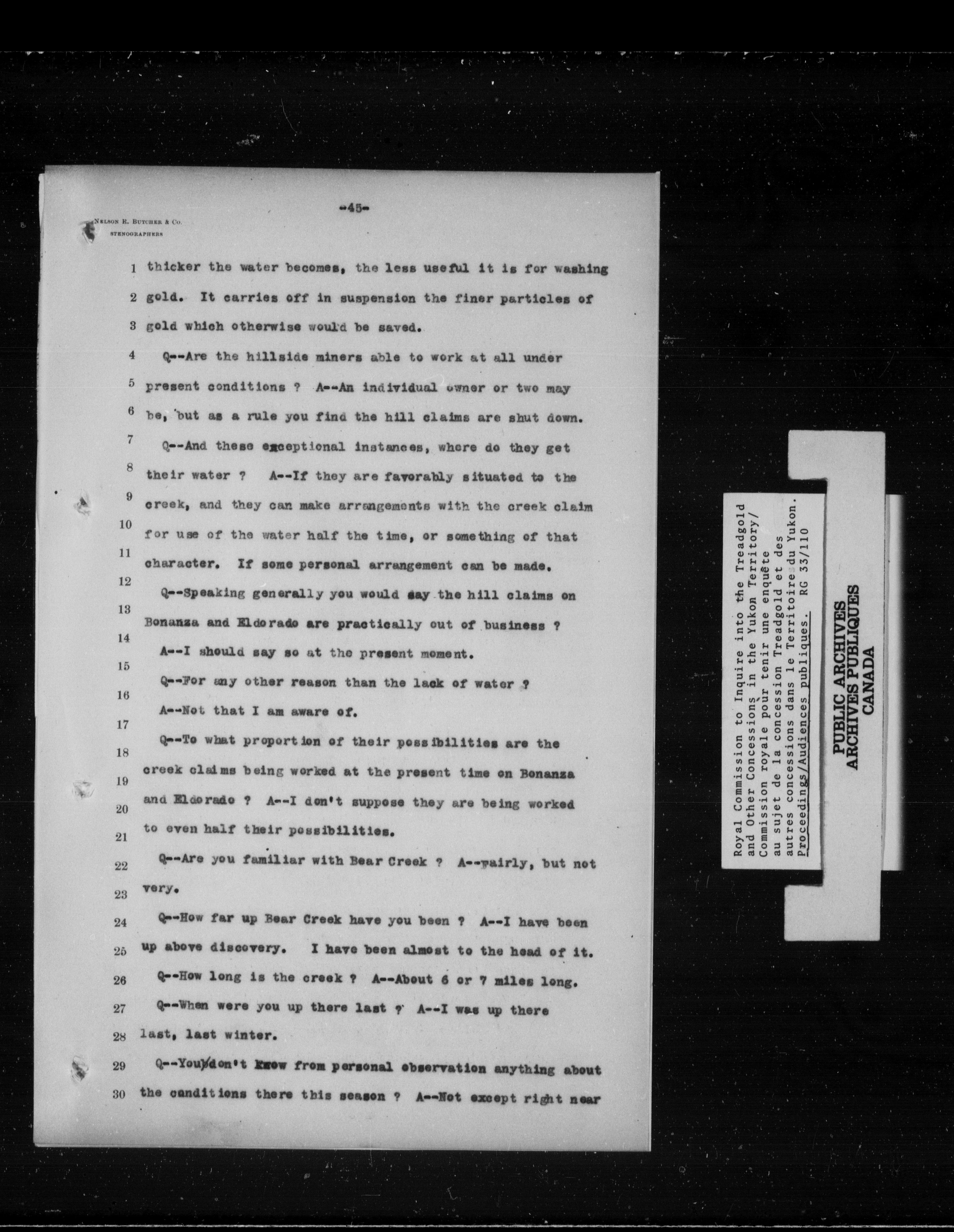 Commission to Inquire into the Treadgold and other concessions in the Yukon Territory - 1320