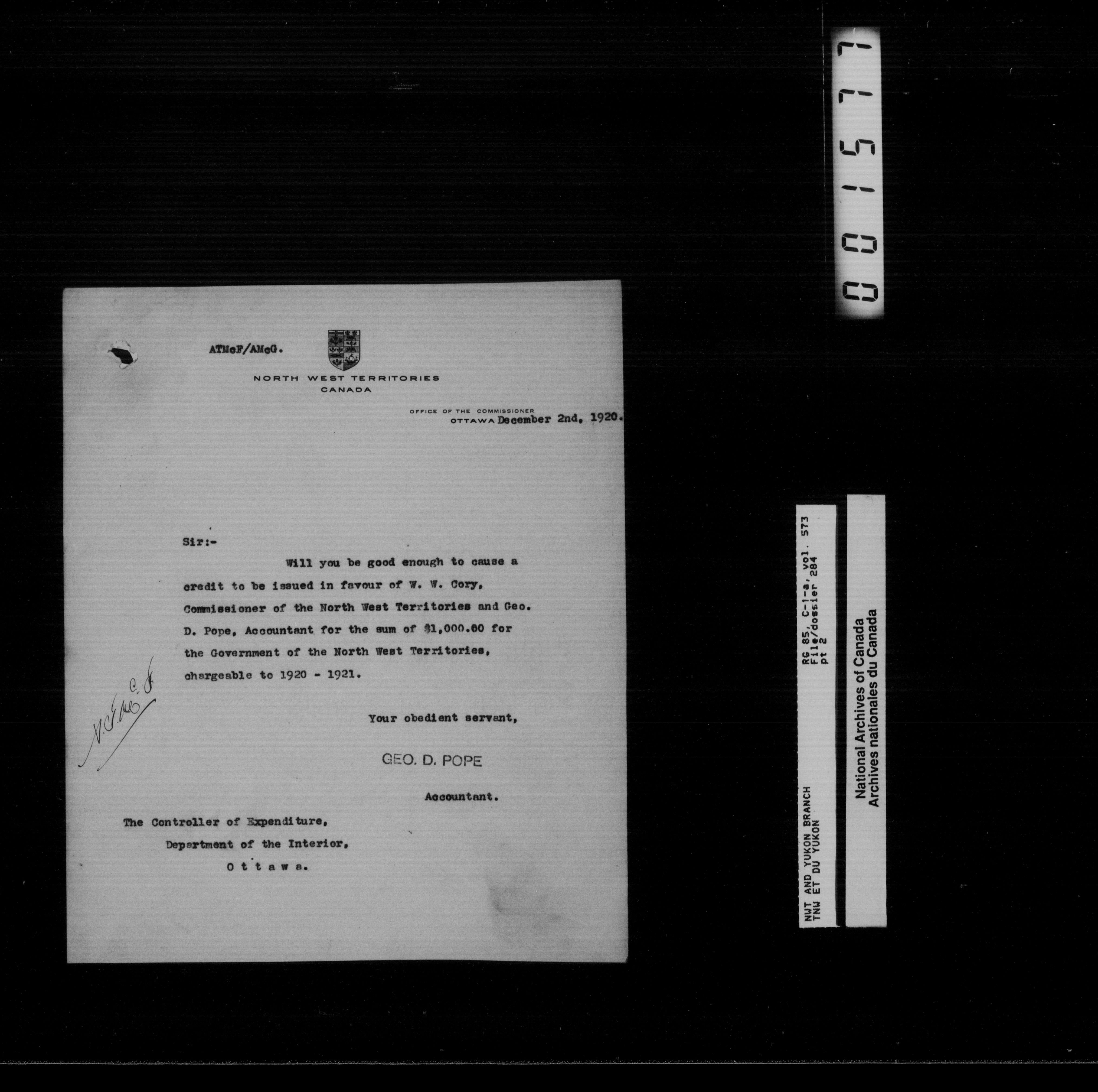 Department of Indian Affairs : Northwest Territories and Yukon Branch, Central Registry files - 13201