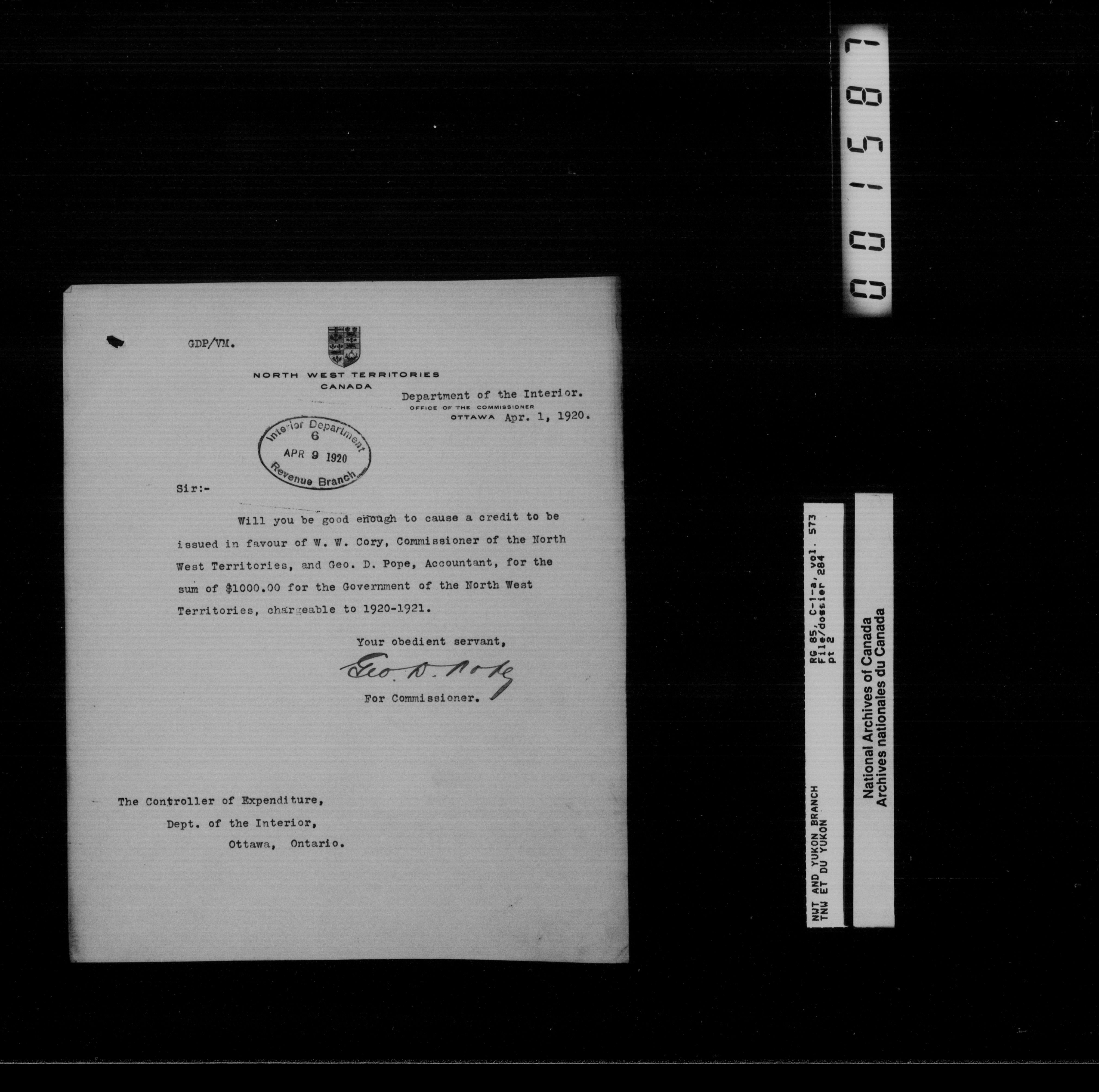 Department of Indian Affairs : Northwest Territories and Yukon Branch, Central Registry files - 13201