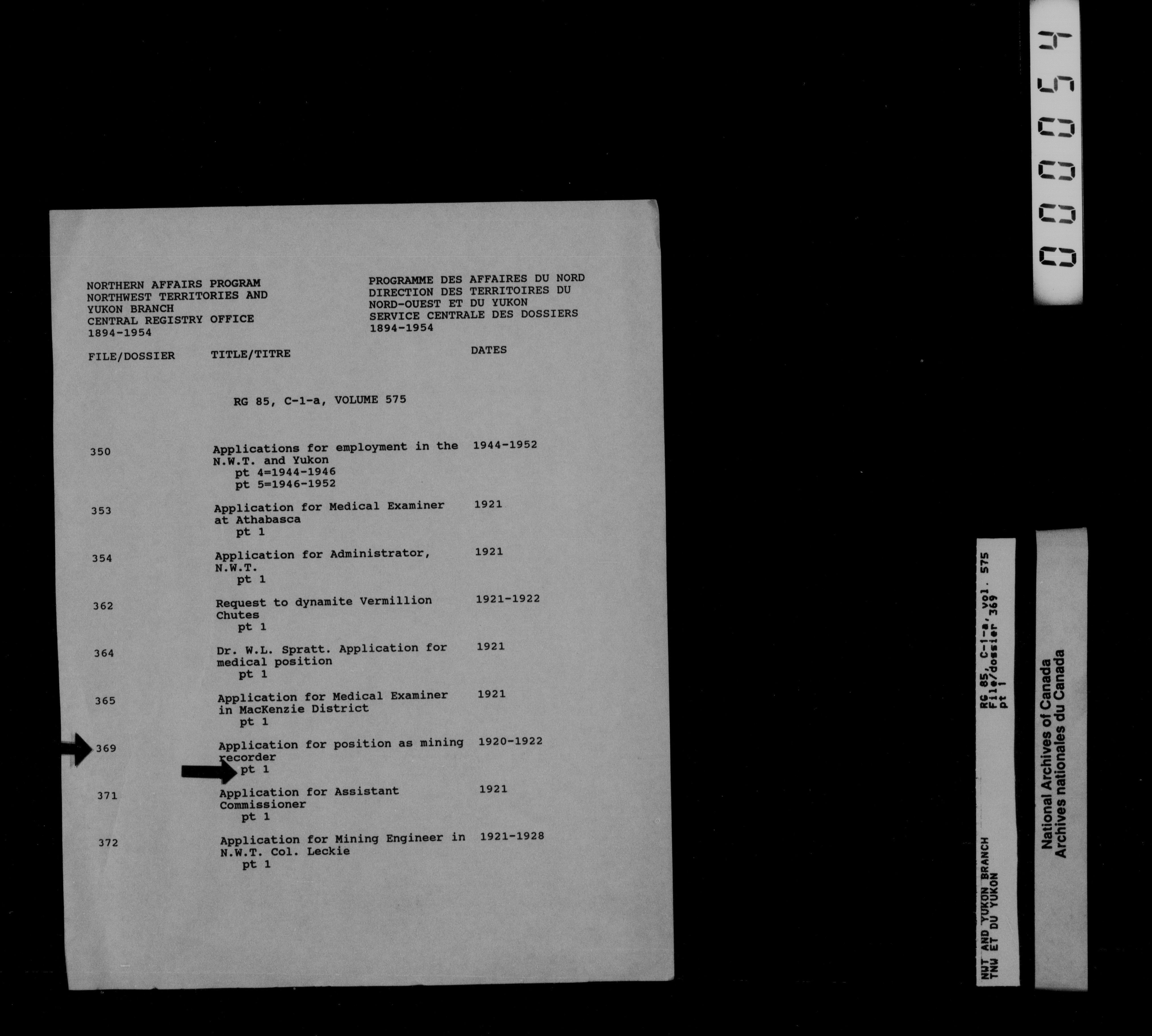 Department of Indian Affairs : Northwest Territories and Yukon Branch, Central Registry files - 13204