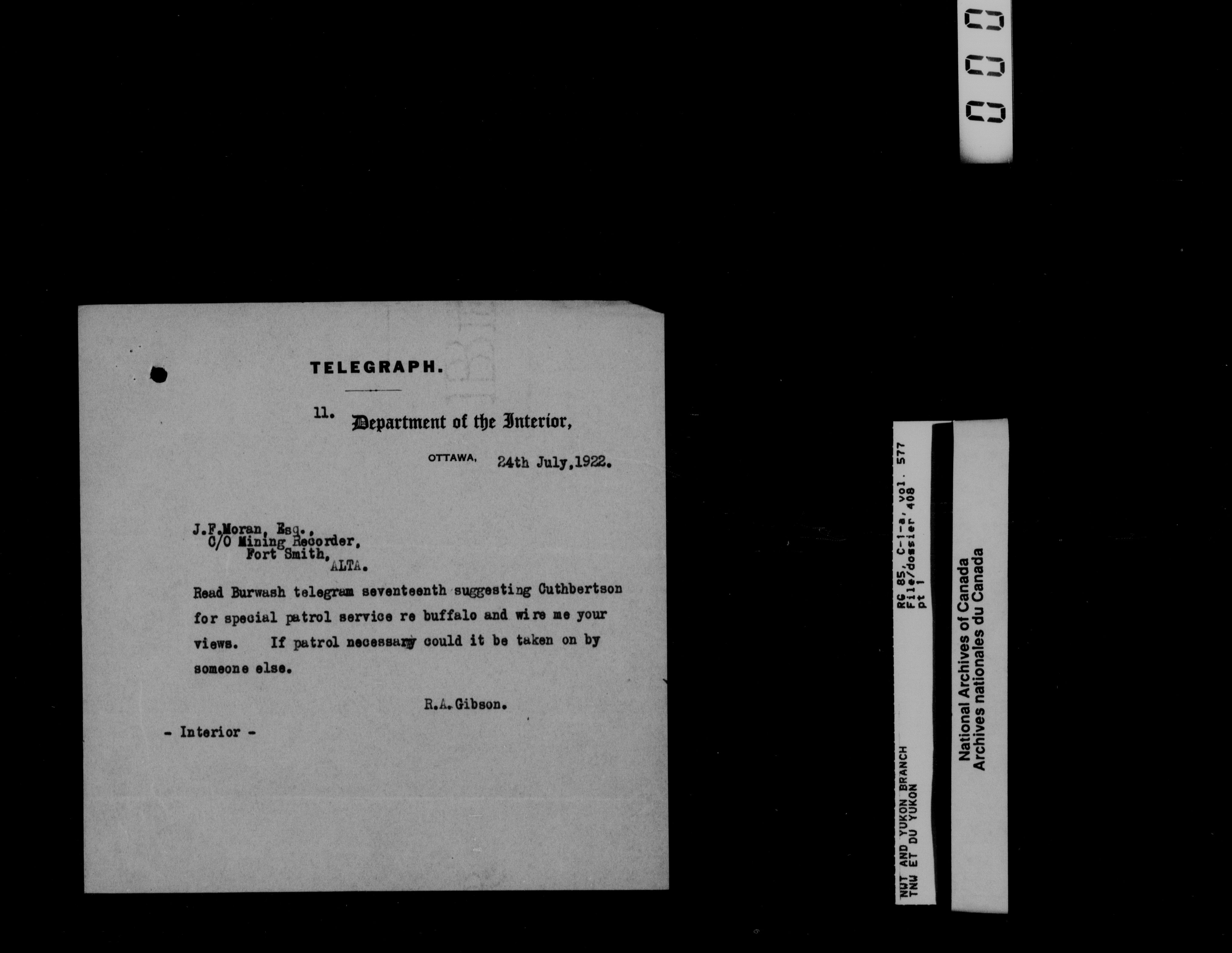 Department of Indian Affairs : Northwest Territories and Yukon Branch, Central Registry files - 13206
