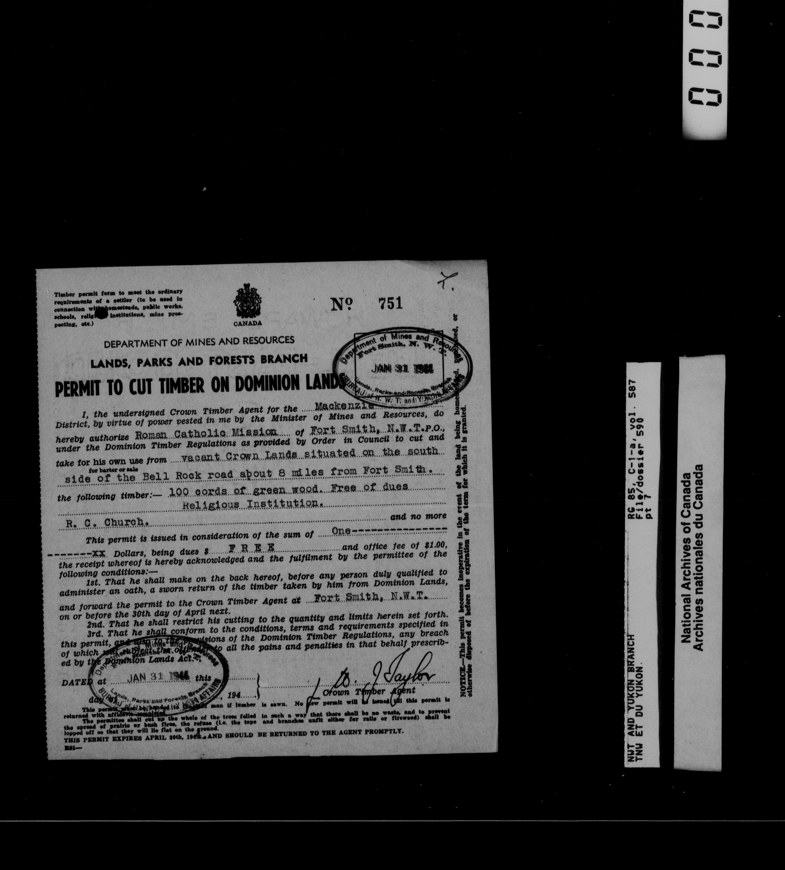 Department of Indian Affairs : Northwest Territories and Yukon Branch : T-13216