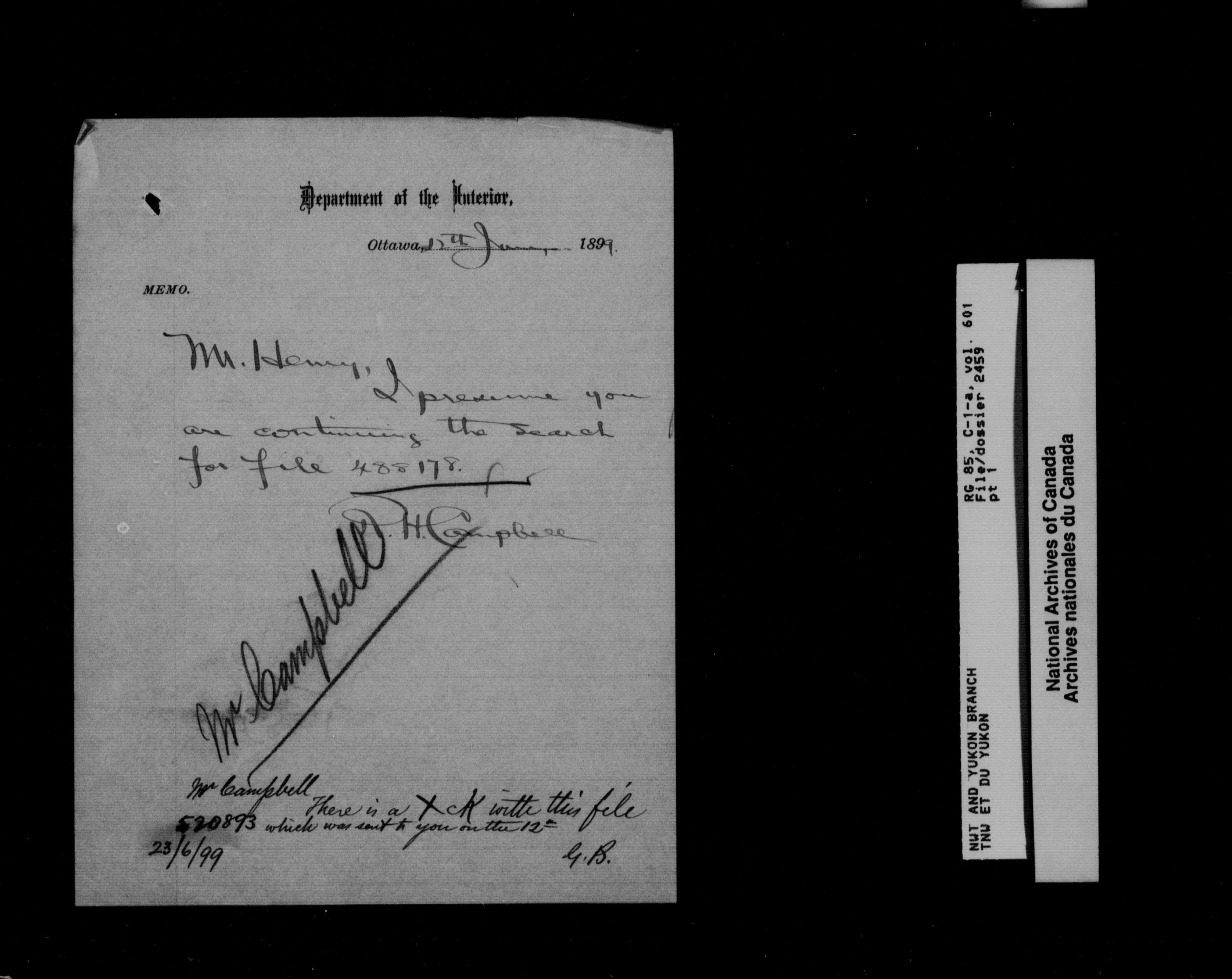 Department of Indian Affairs : Northwest Territories and Yukon Branch, Central Registry files - 13229