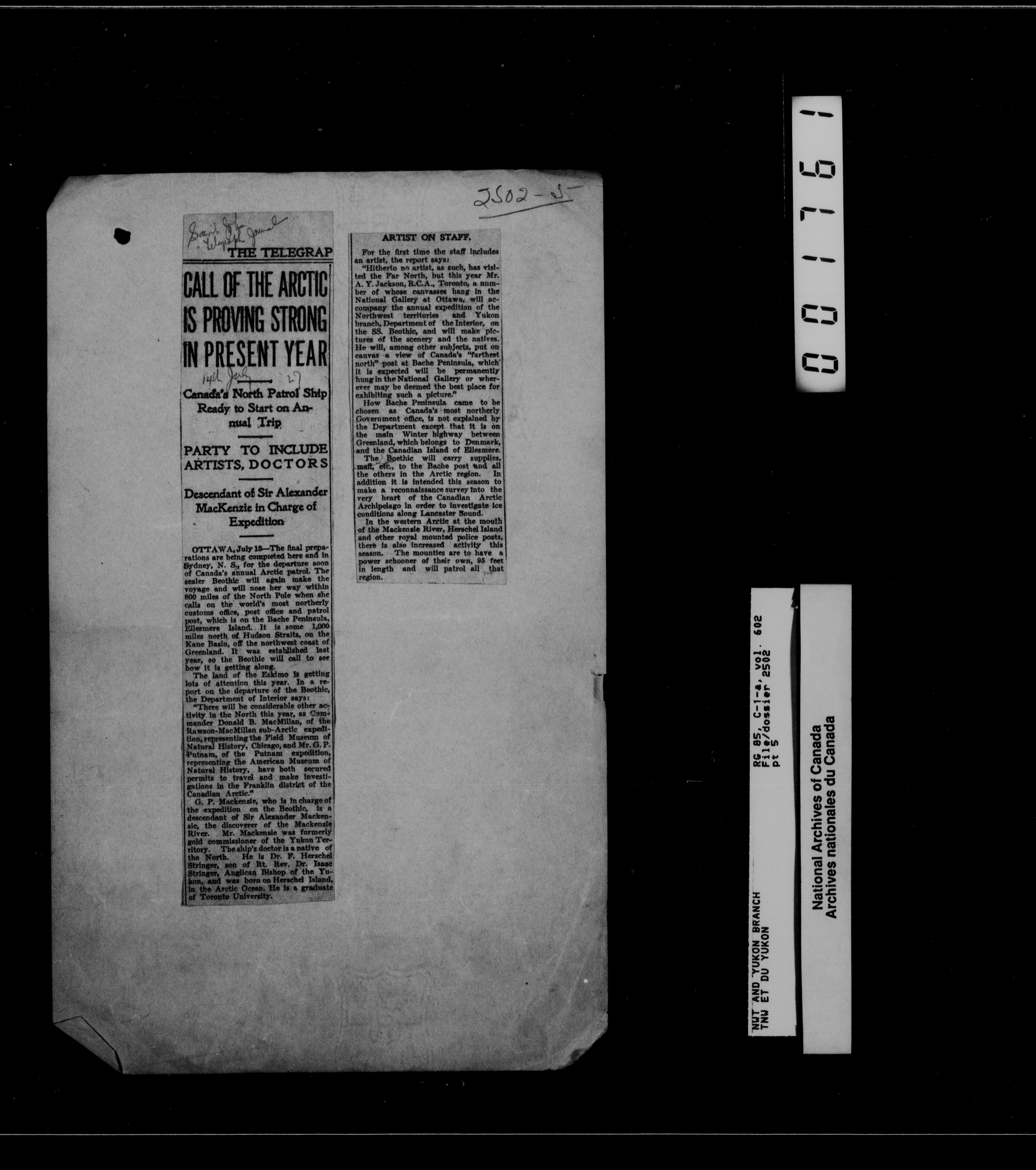 Department of Indian Affairs : Northwest Territories and Yukon Branch, Central Registry files - 13230