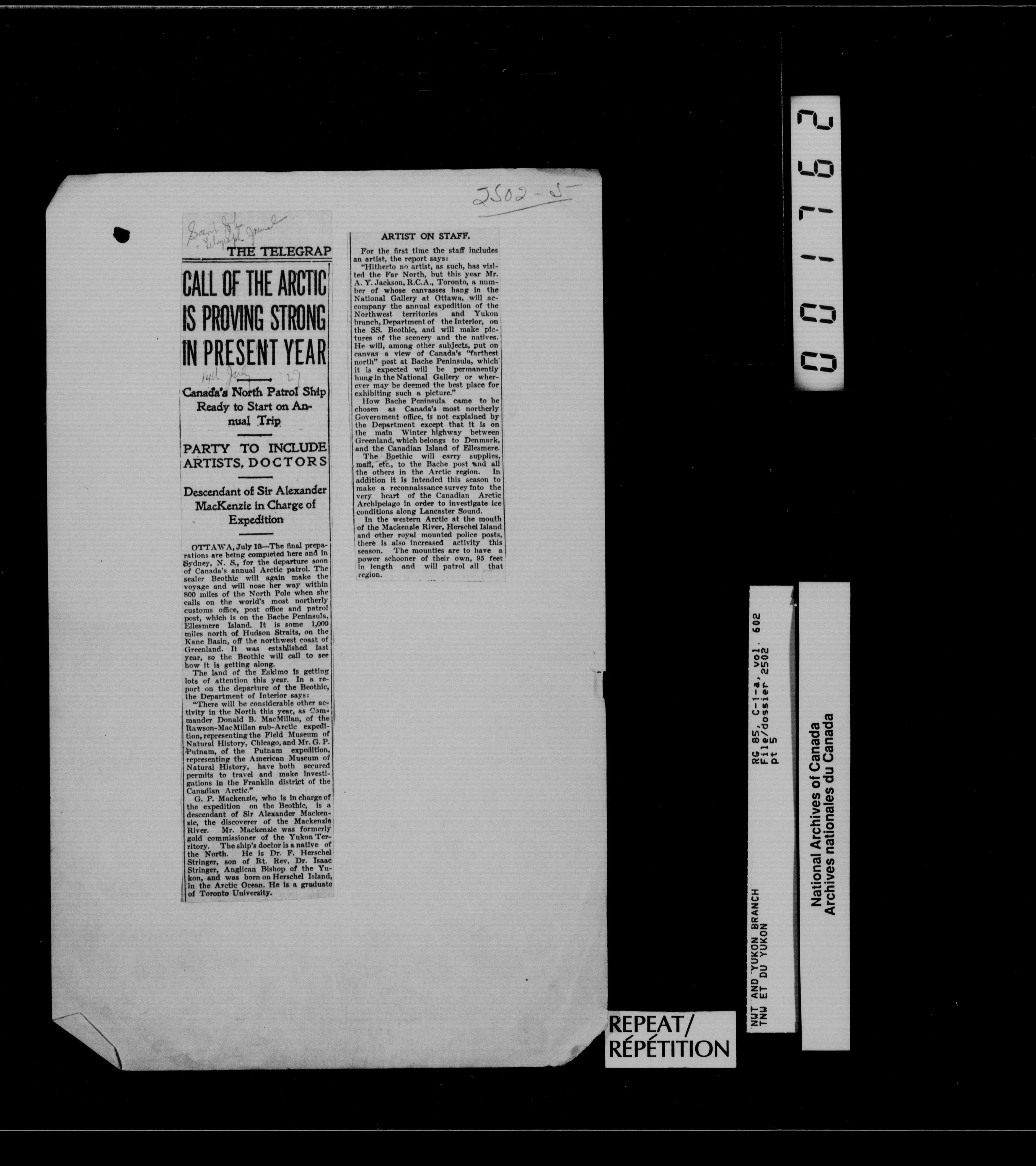 Department of Indian Affairs : Northwest Territories and Yukon Branch, Central Registry files - 13230