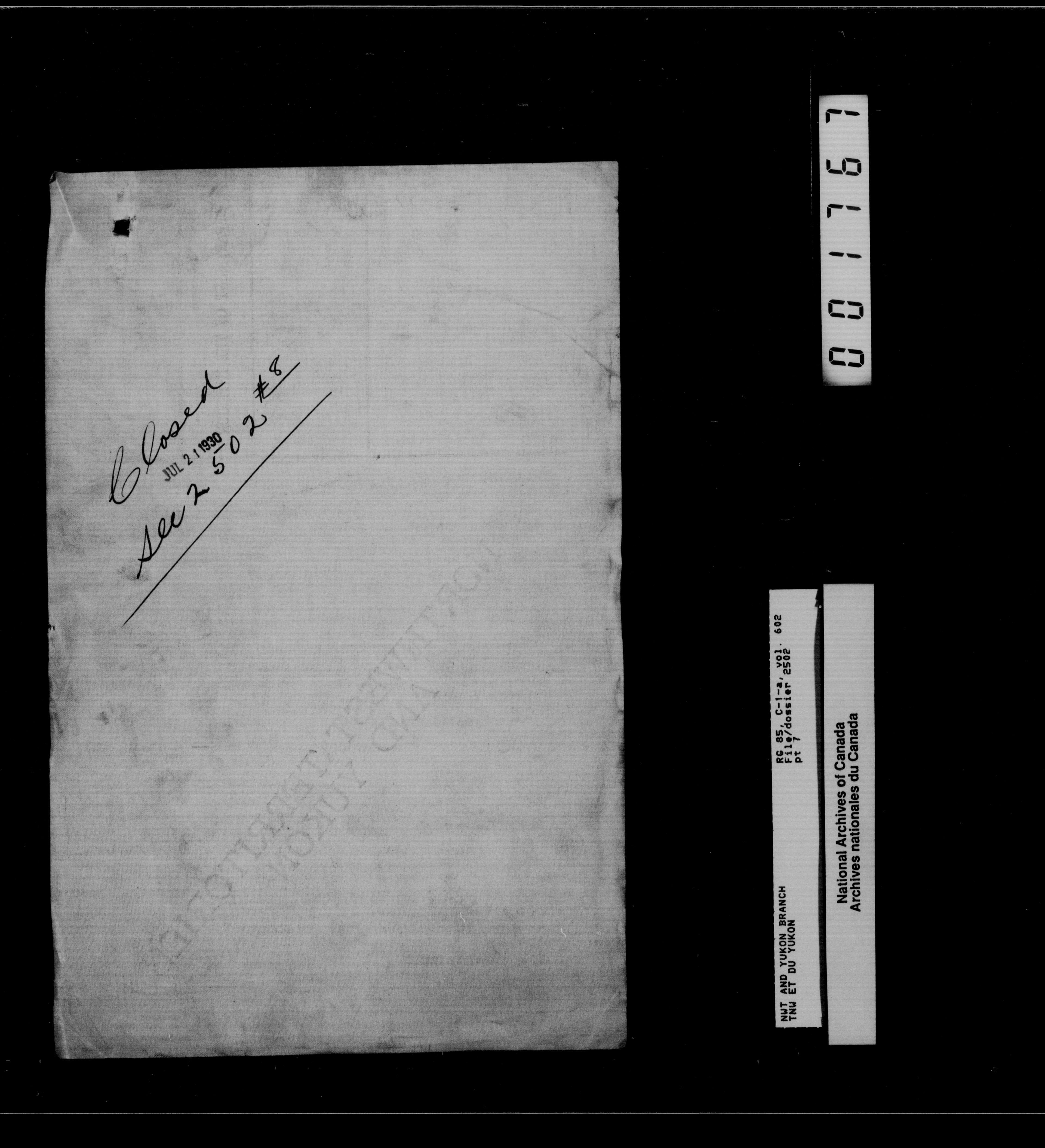 Department of Indian Affairs : Northwest Territories and Yukon Branch, Central Registry files - 13230