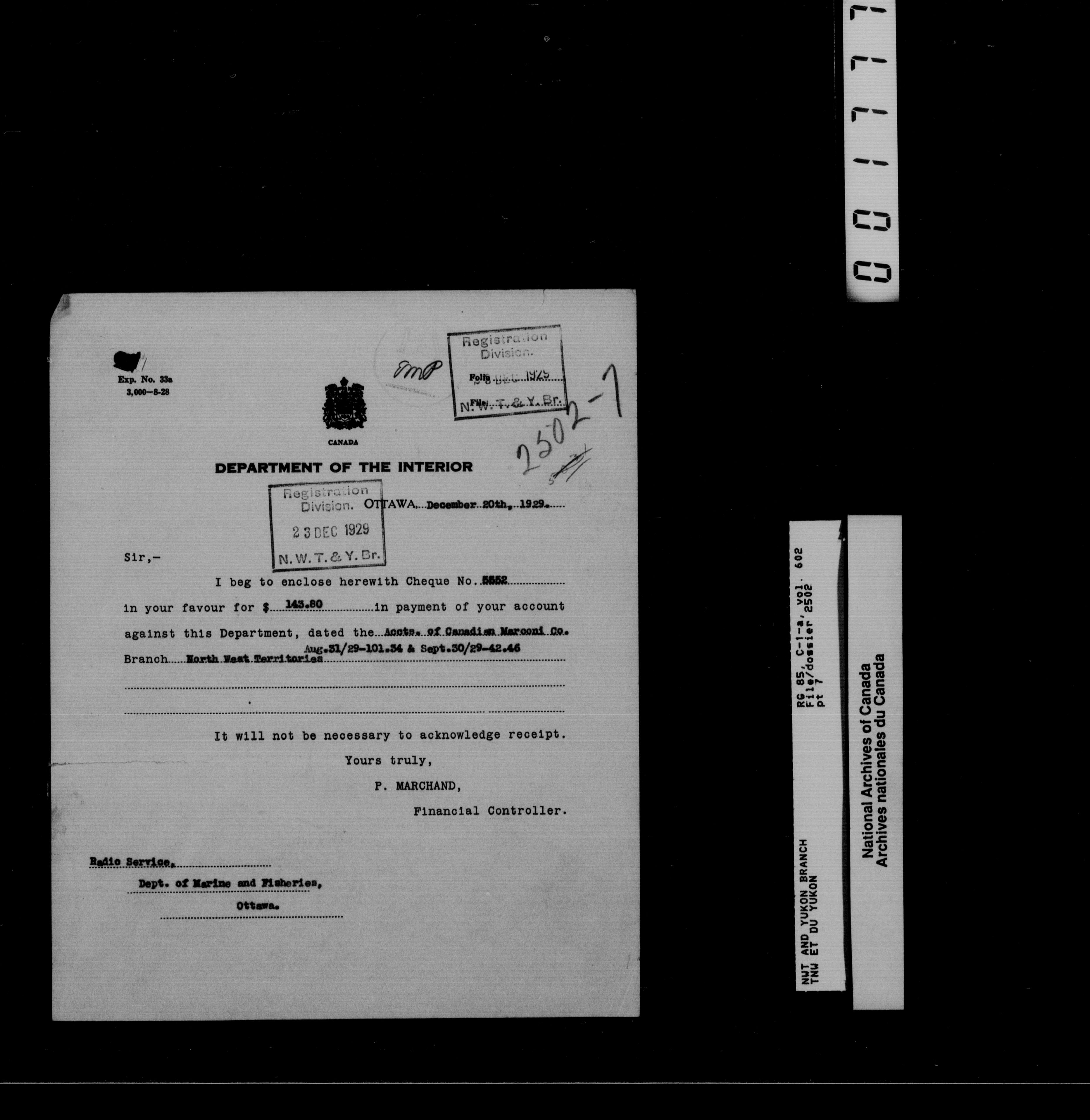 Department of Indian Affairs : Northwest Territories and Yukon Branch, Central Registry files - 13230
