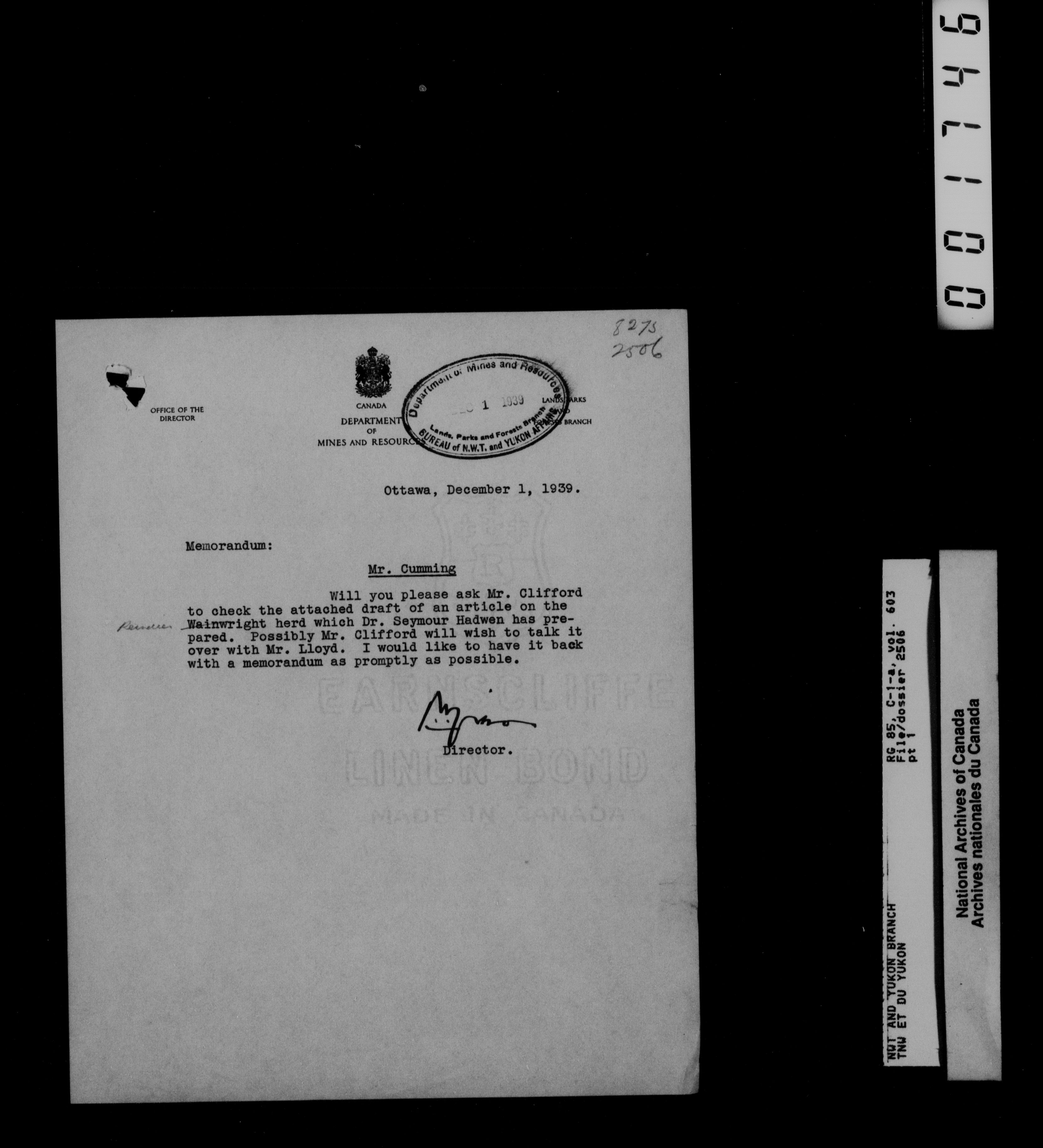 Department of Indian Affairs : Northwest Territories and Yukon Branch, Central Registry files - 13231
