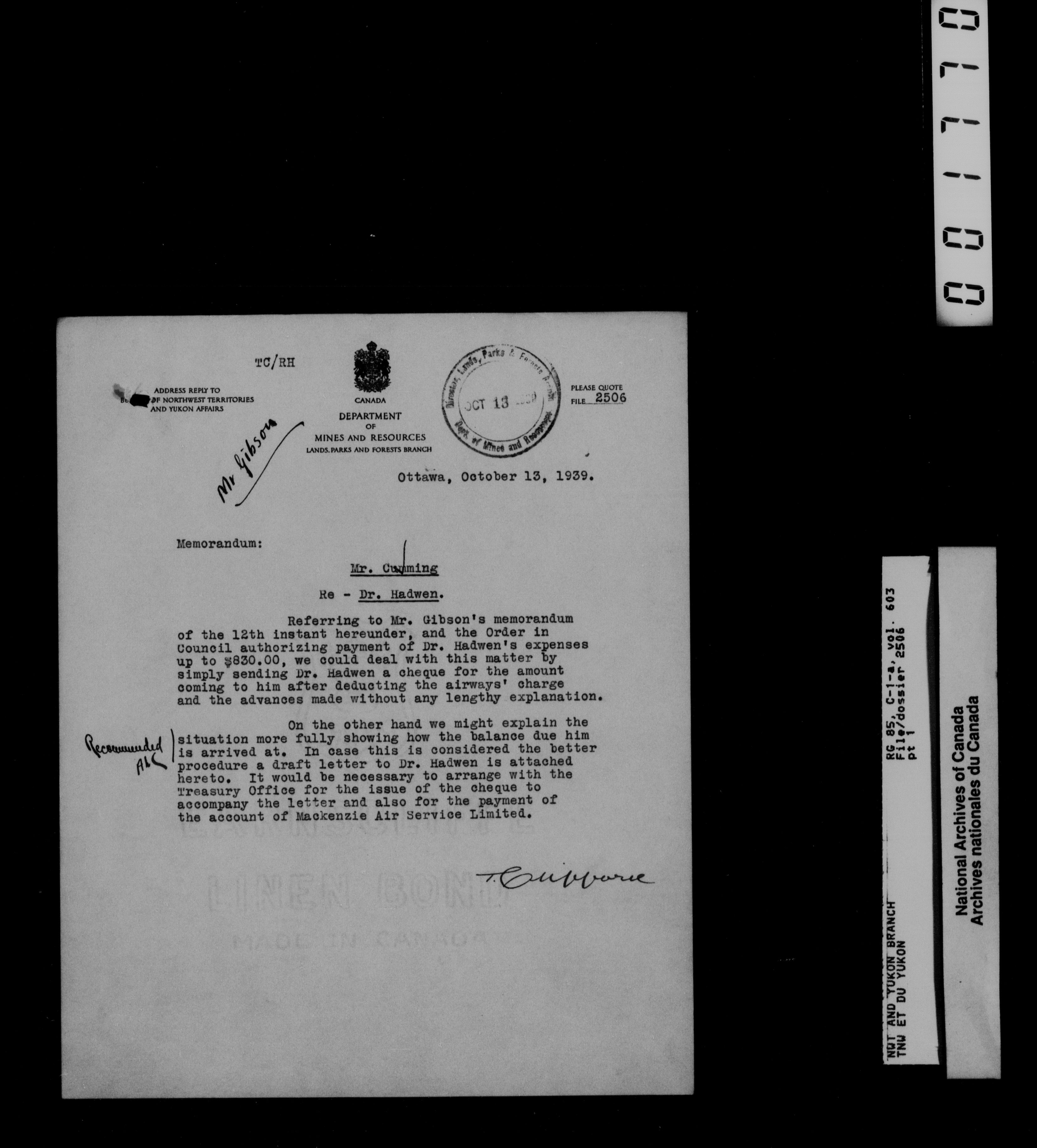 Department of Indian Affairs : Northwest Territories and Yukon Branch, Central Registry files - 13231