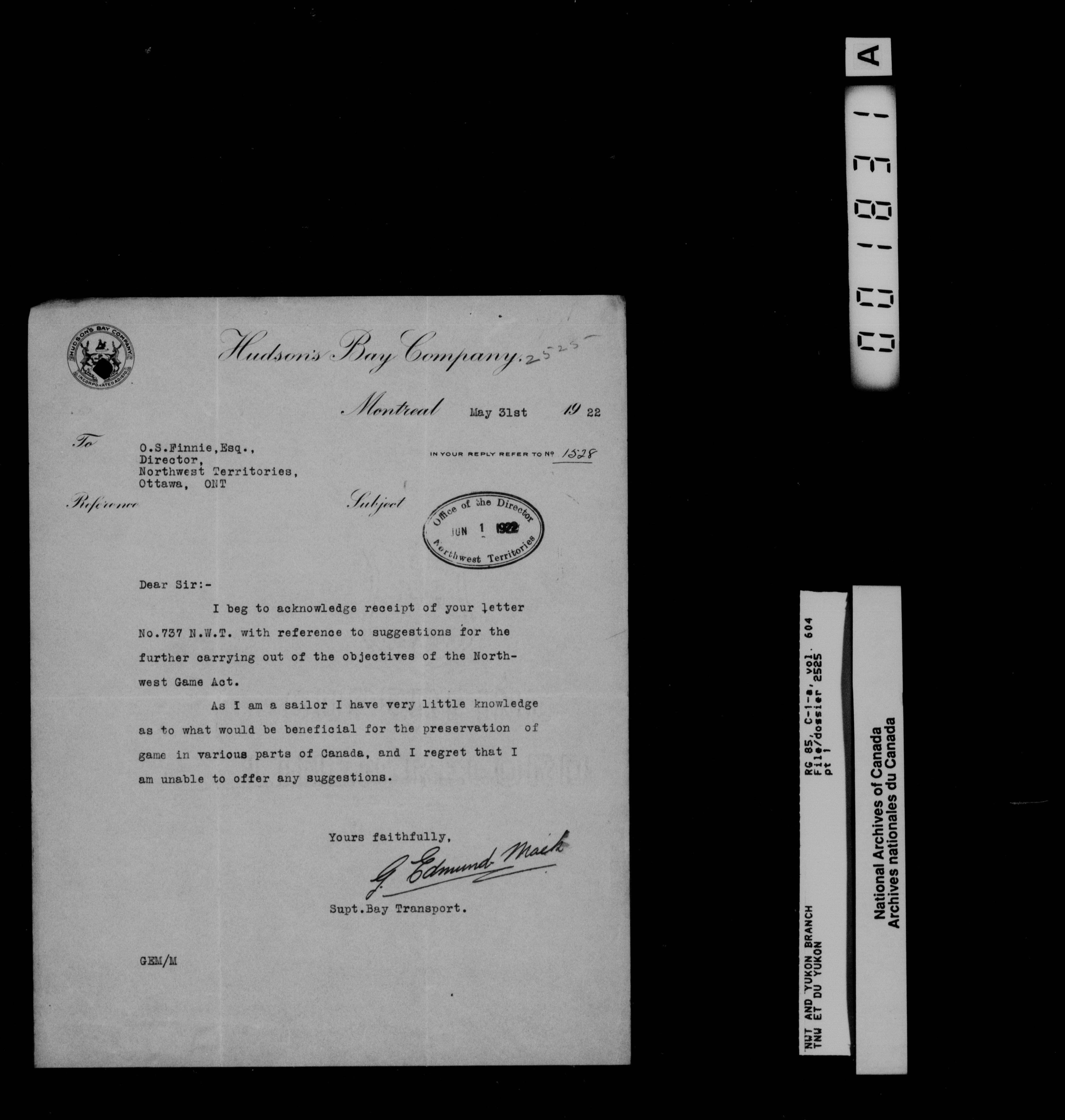 Department of Indian Affairs : Northwest Territories and Yukon Branch, Central Registry files - 13232