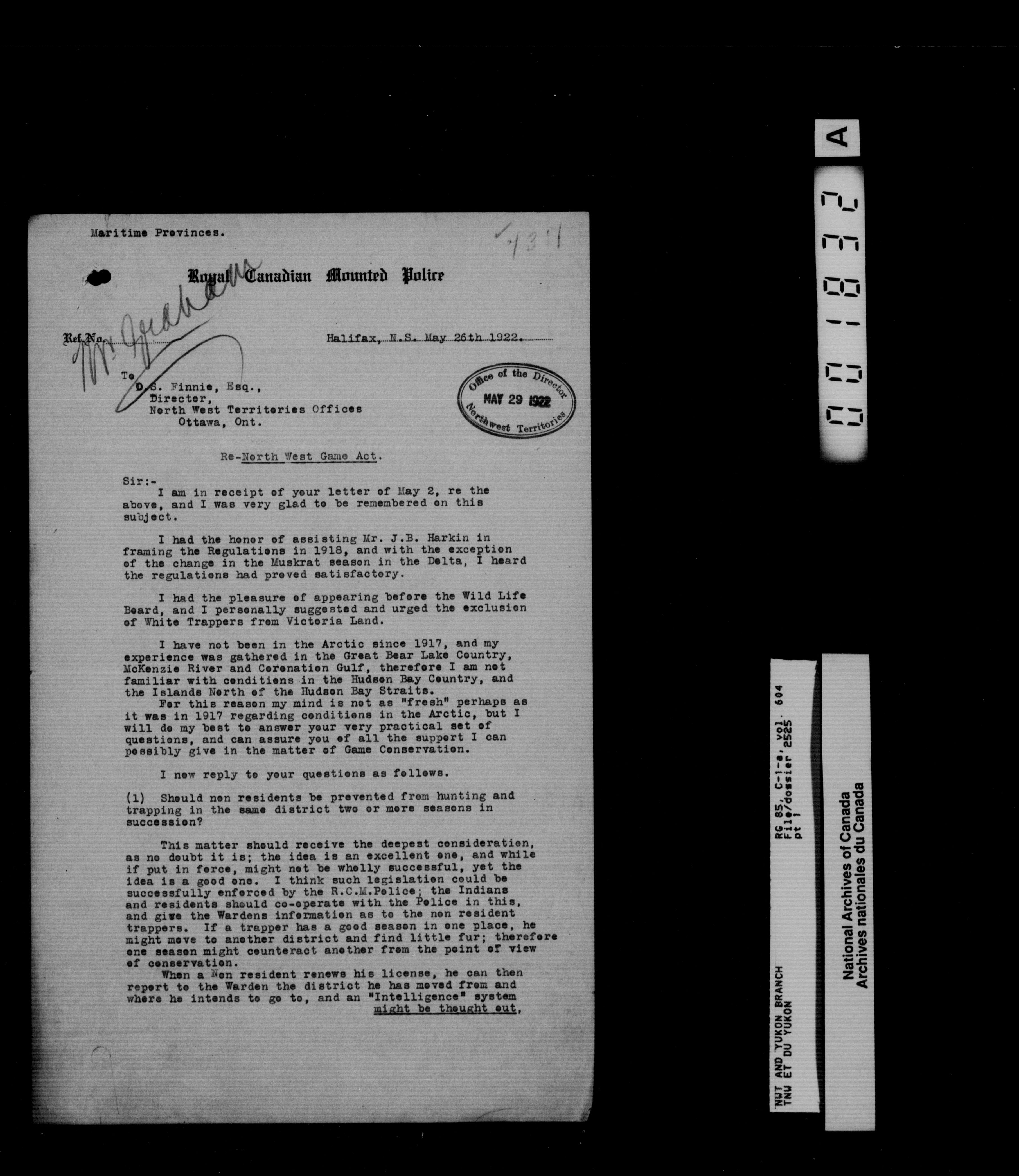 Department of Indian Affairs : Northwest Territories and Yukon Branch, Central Registry files - 13232