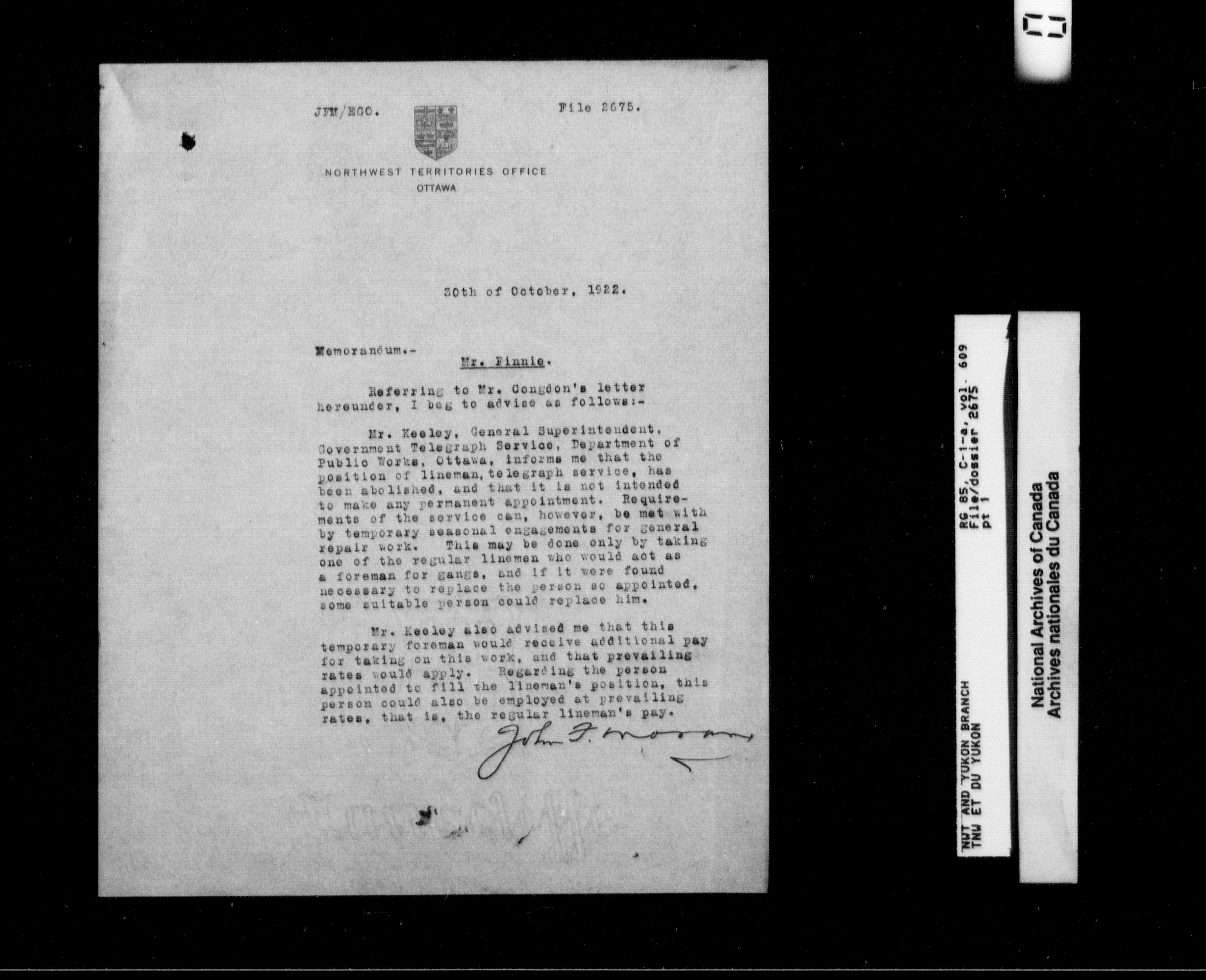 Department of Indian Affairs : Northwest Territories and Yukon Branch, Central Registry files - 13238