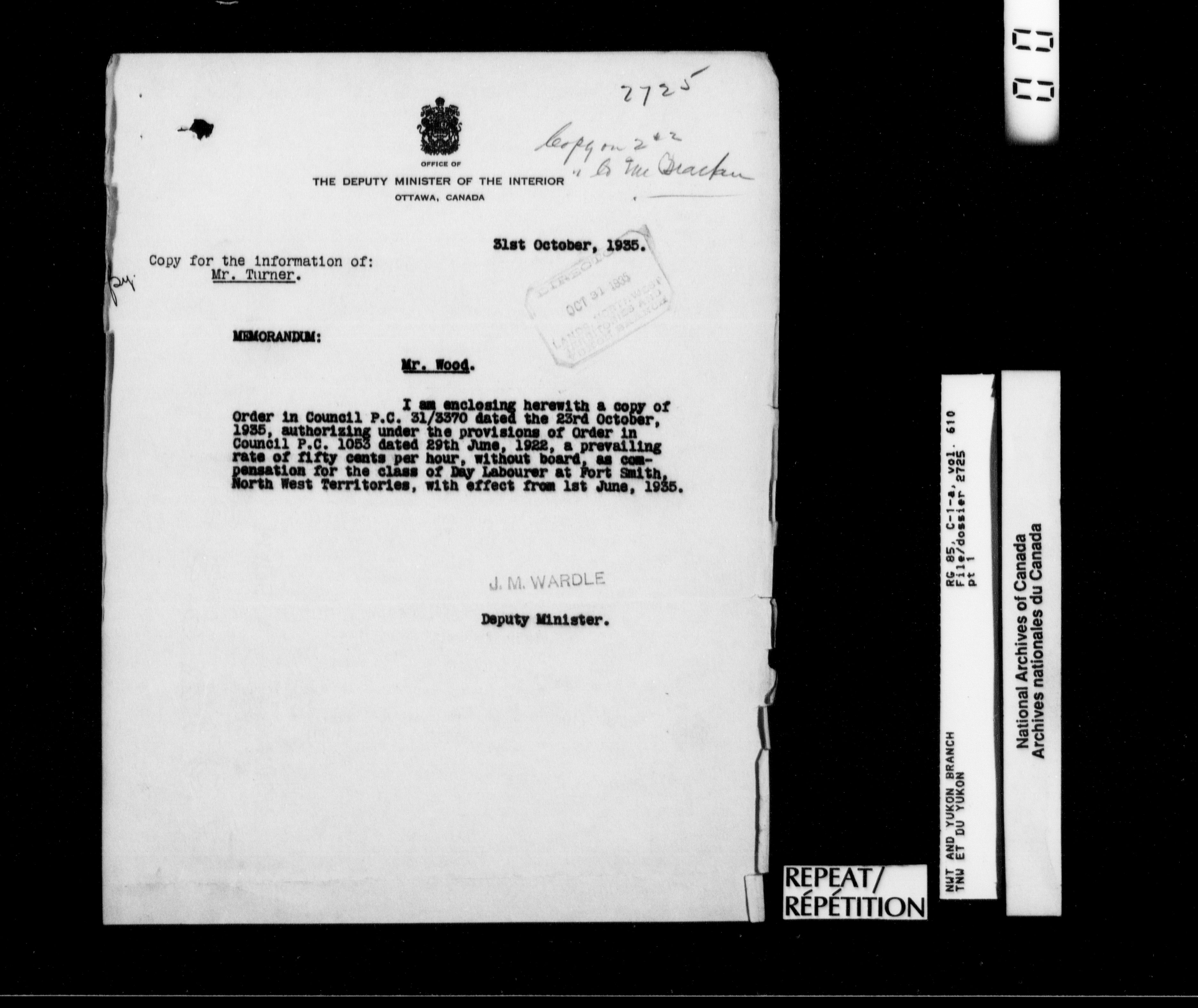 Department of Indian Affairs : Northwest Territories and Yukon Branch, Central Registry files - 13238