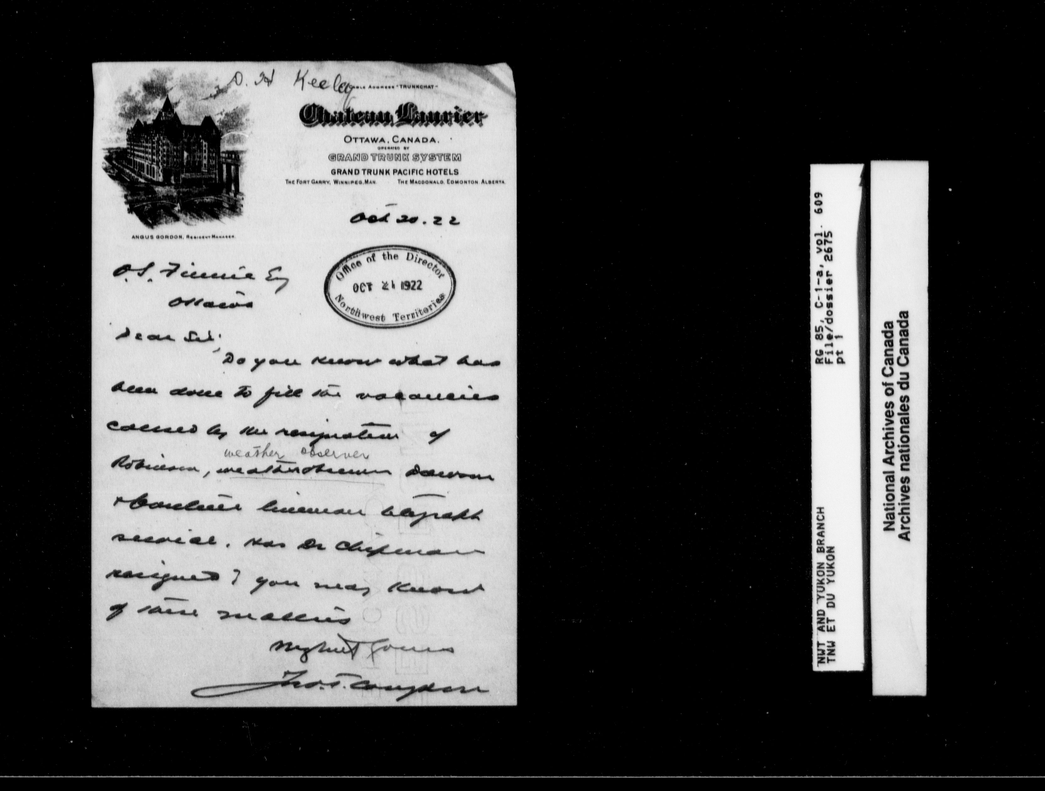 Department of Indian Affairs : Northwest Territories and Yukon Branch, Central Registry files - 13238
