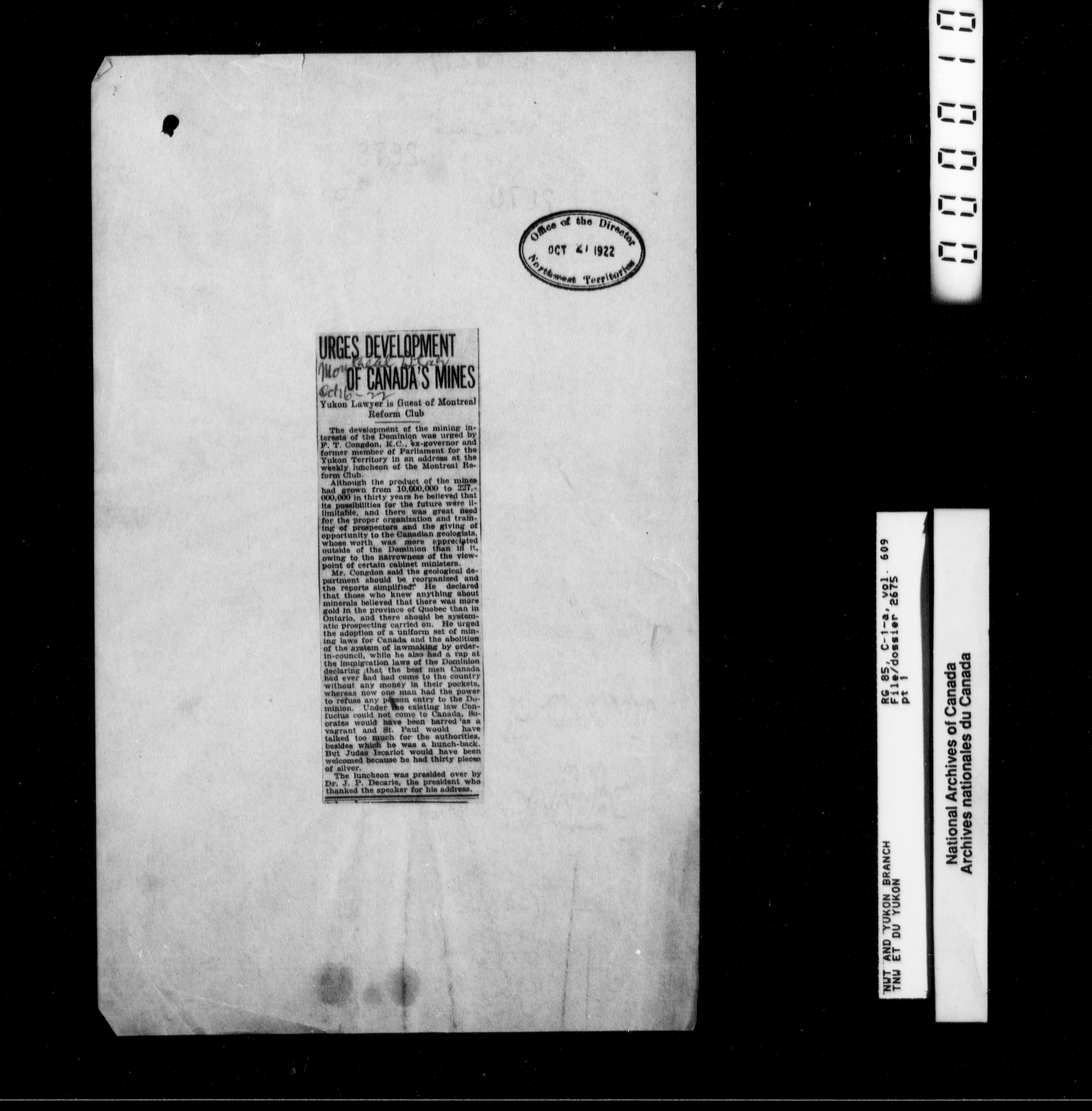 Department of Indian Affairs : Northwest Territories and Yukon Branch, Central Registry files - 13238