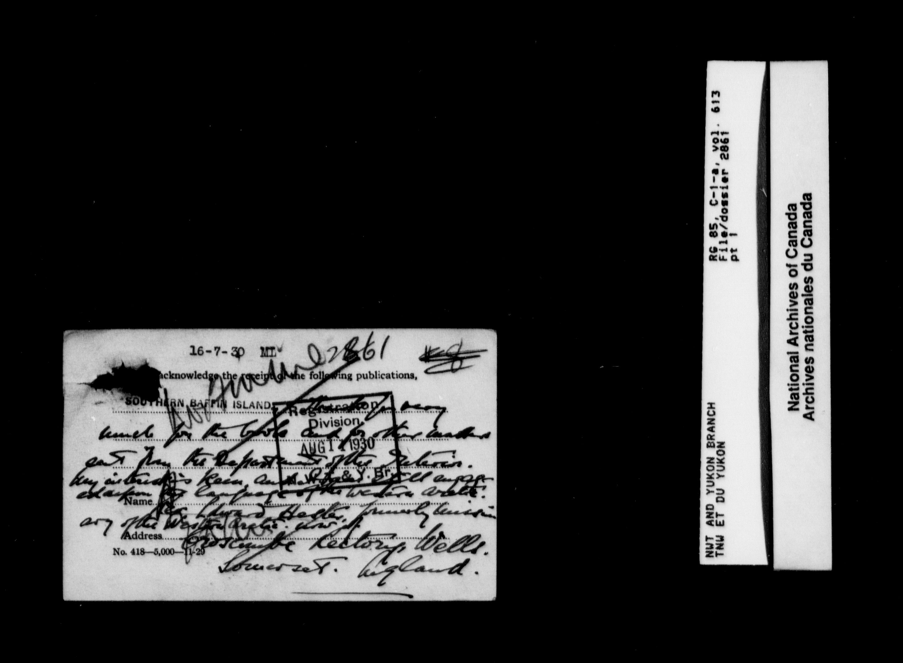 Department of Indian Affairs : Northwest Territories and Yukon Branch : T-13241