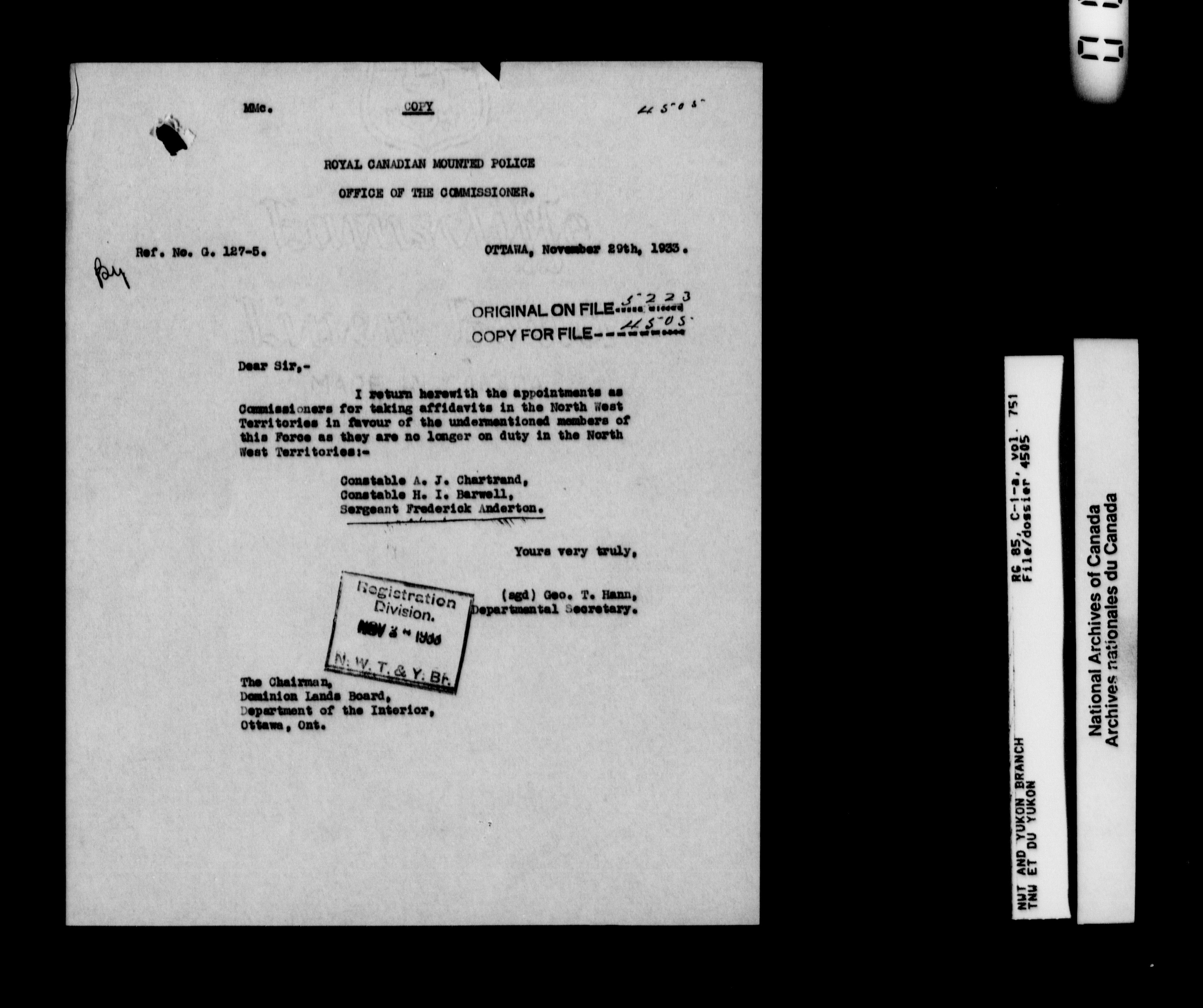 Department of Indian Affairs : Northwest Territories and Yukon Branch, Central Registry files - 13259