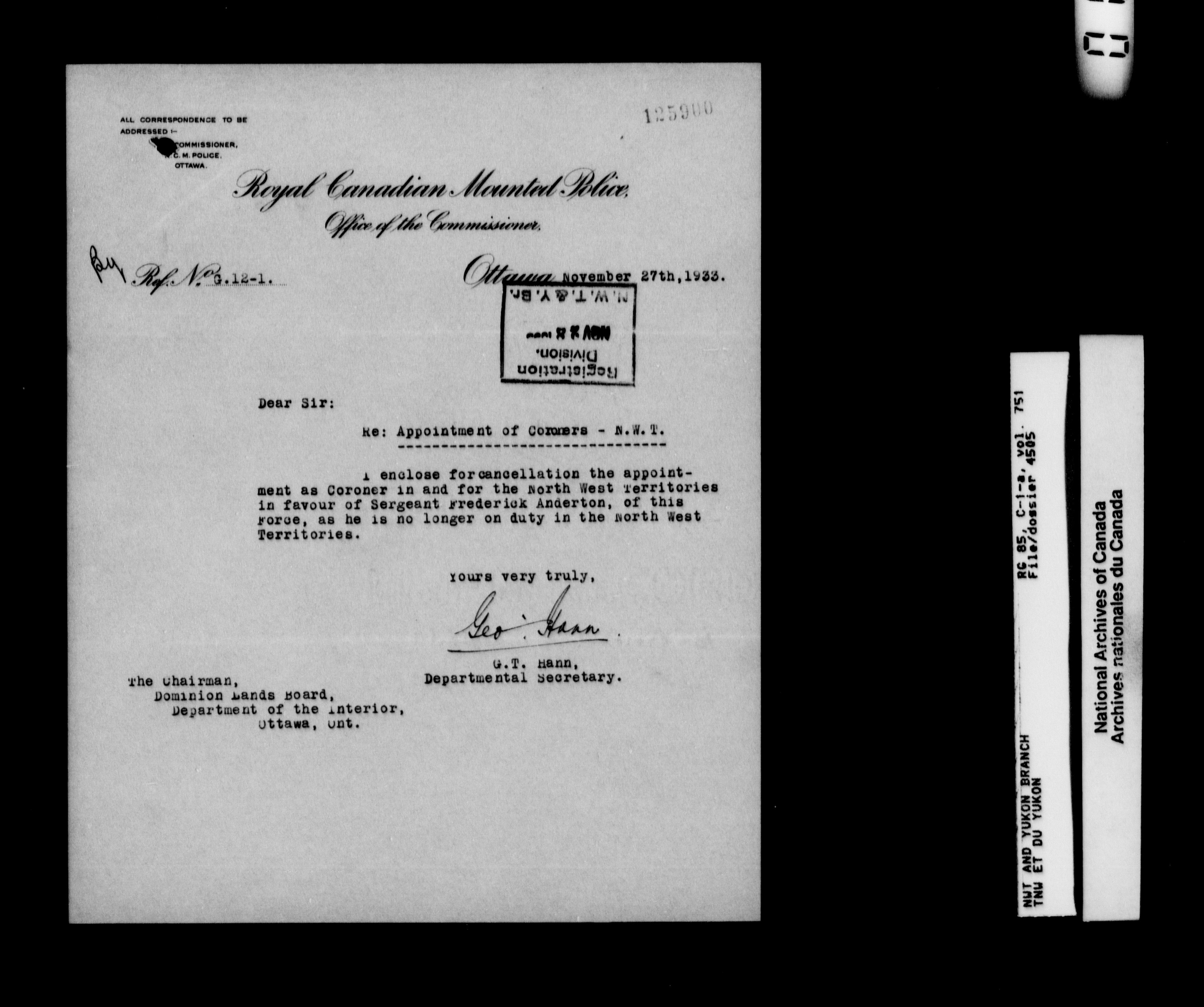 Department of Indian Affairs : Northwest Territories and Yukon Branch, Central Registry files - 13259