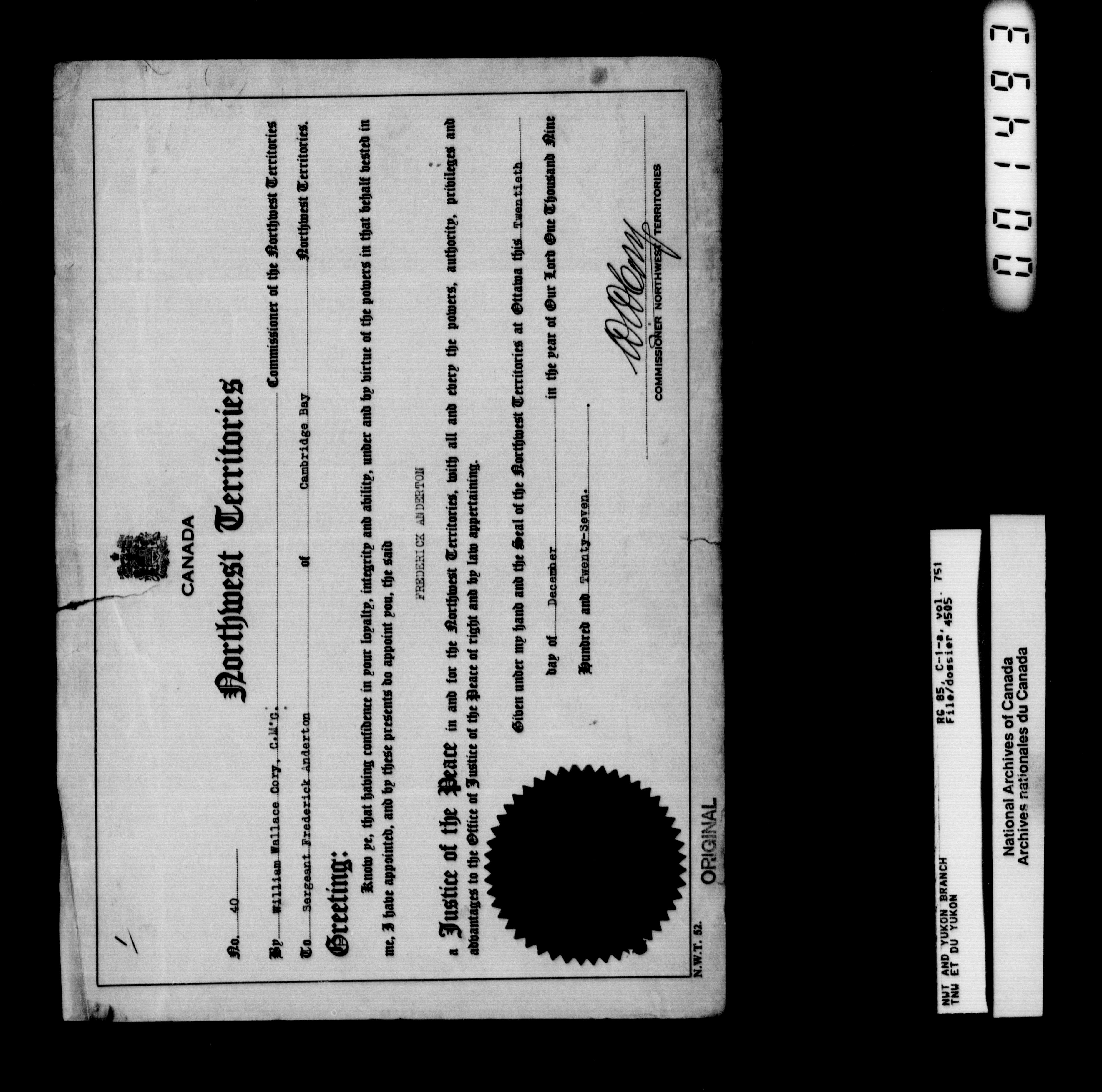 Department of Indian Affairs : Northwest Territories and Yukon Branch : T-13259