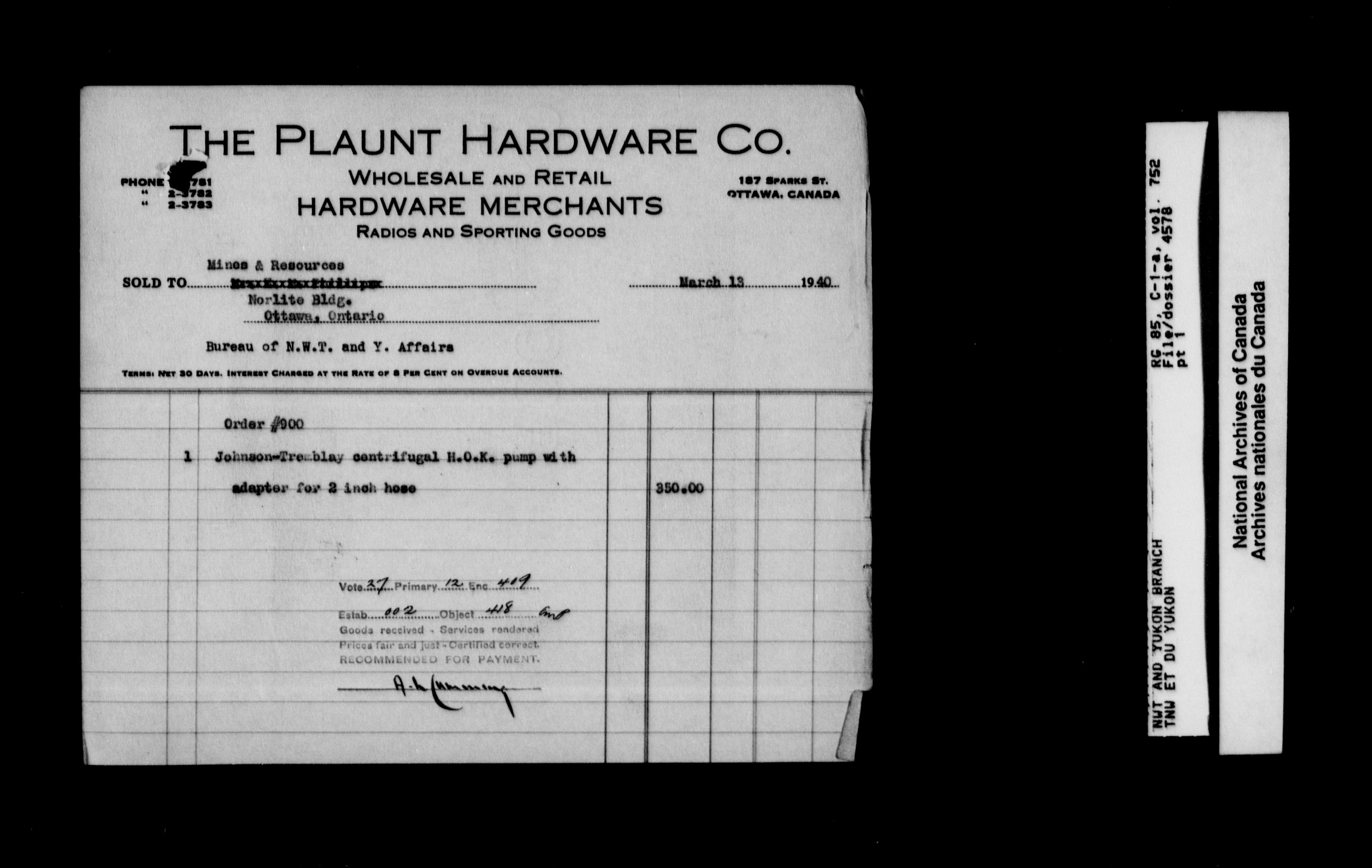 Department of Indian Affairs : Northwest Territories and Yukon Branch : T-13260