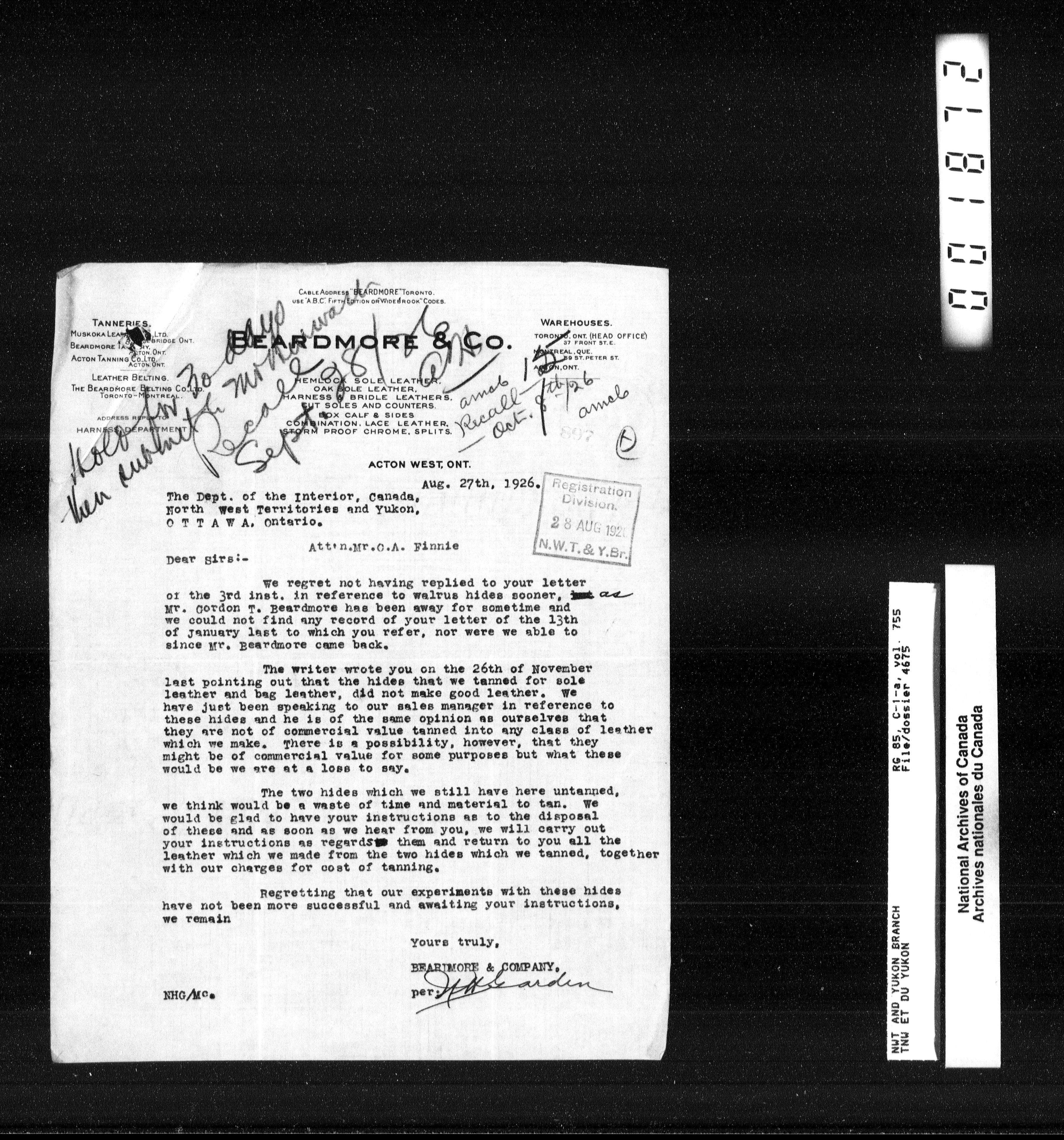Department of Indian Affairs : Northwest Territories and Yukon Branch, Central Registry files - 13263