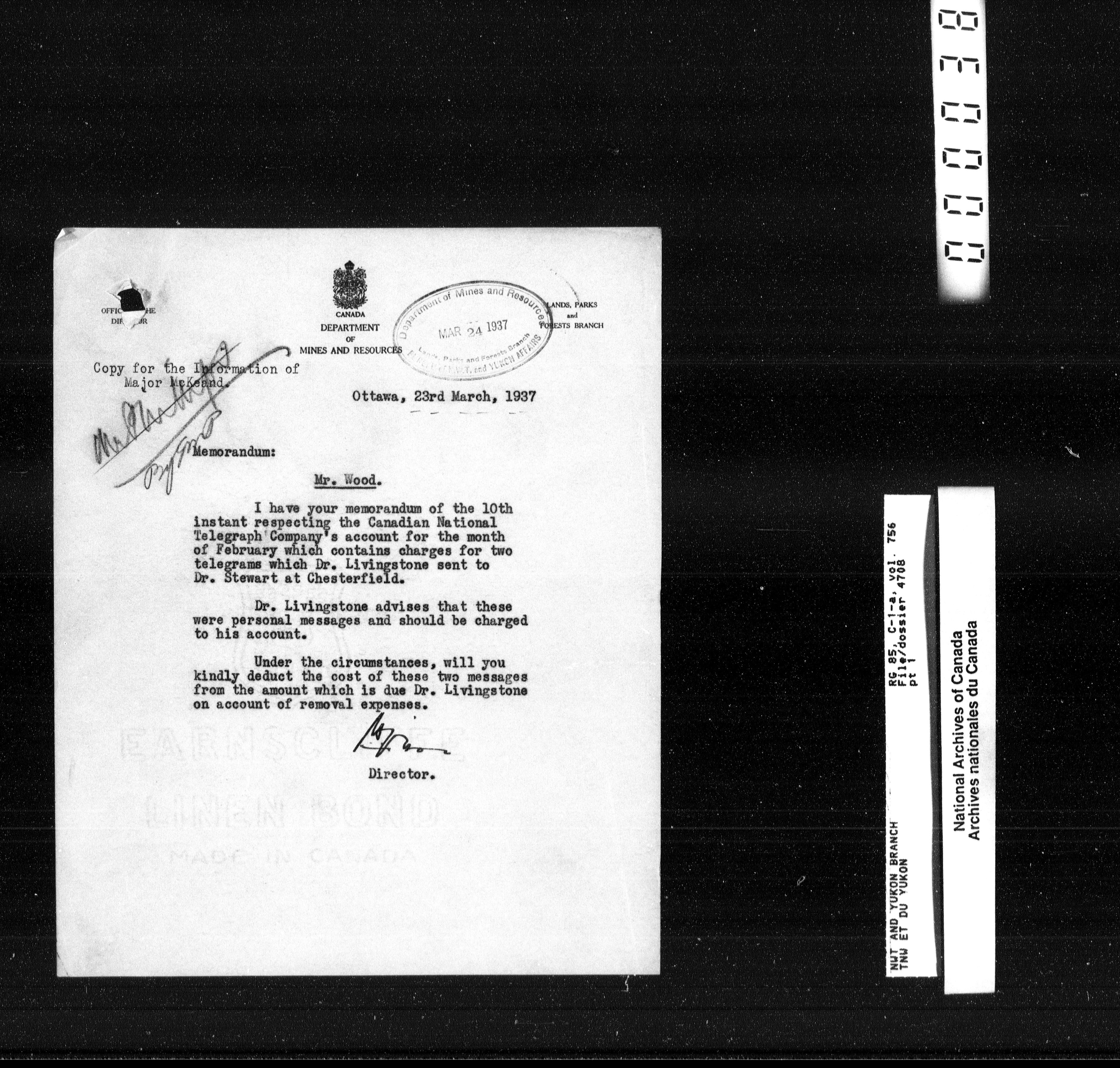 Department of Indian Affairs : Northwest Territories and Yukon Branch, Central Registry files - 13265