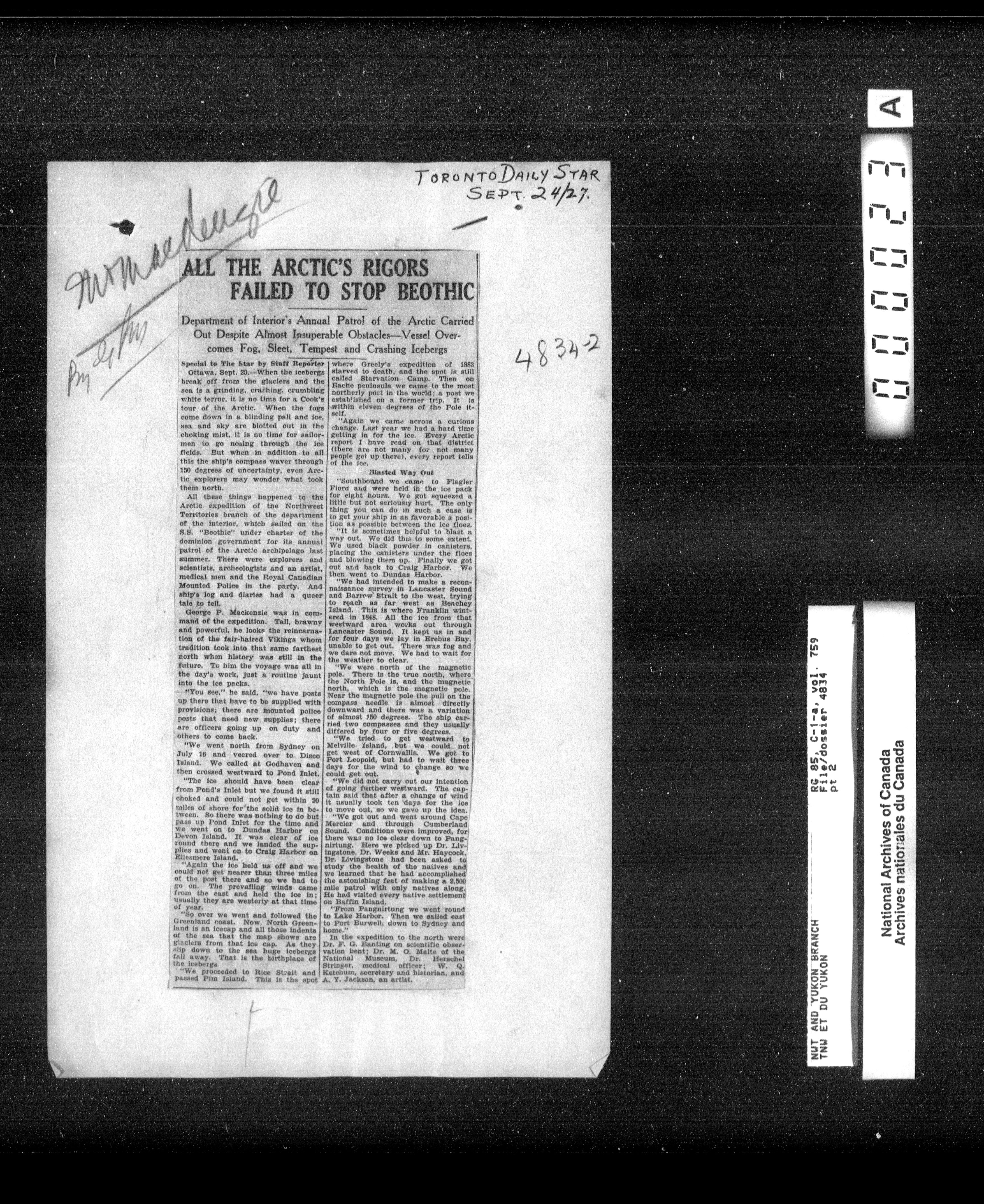 Department of Indian Affairs : Northwest Territories and Yukon Branch, Central Registry files - 13268