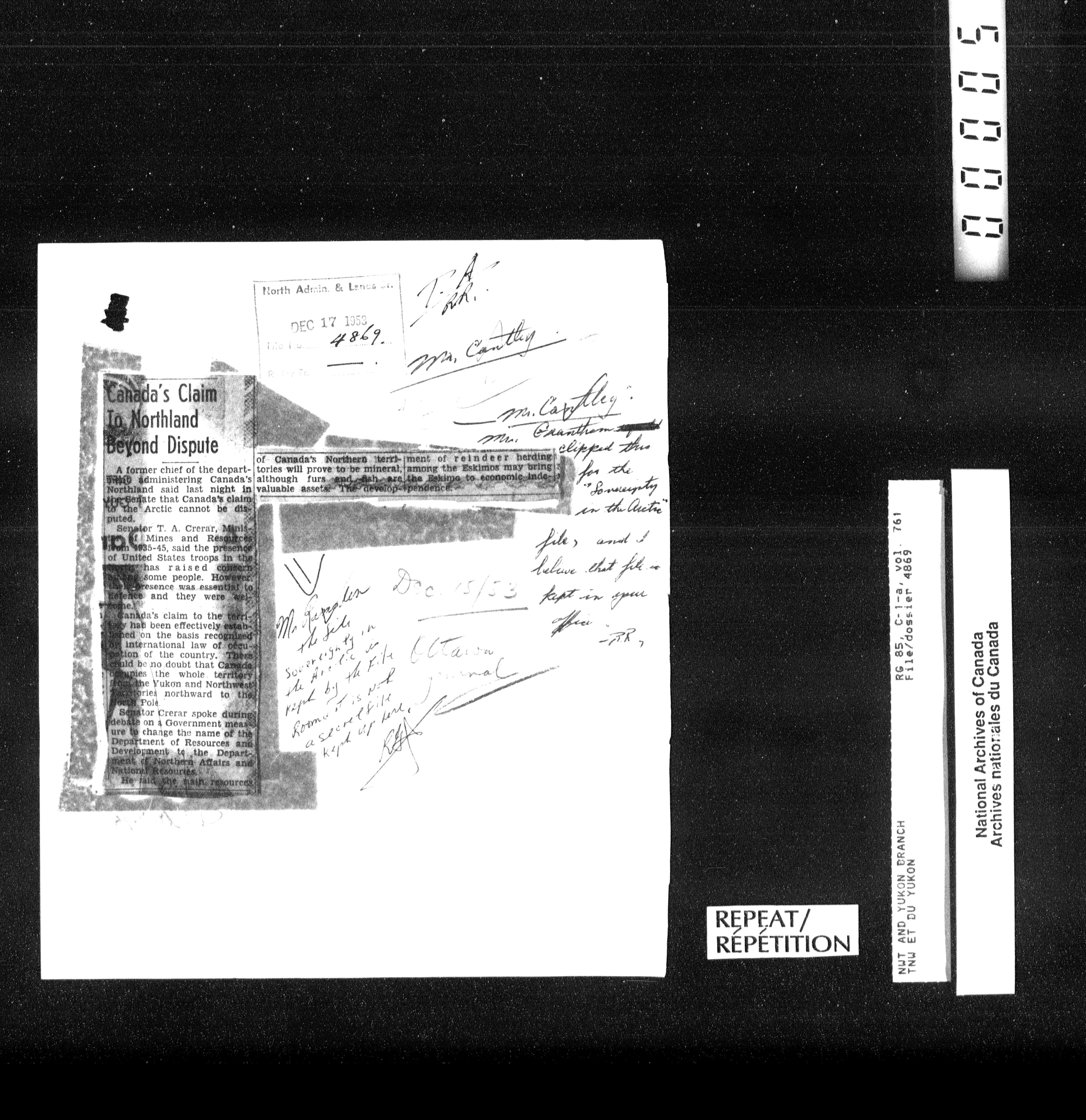 Department of Indian Affairs : Northwest Territories and Yukon Branch : T-13269