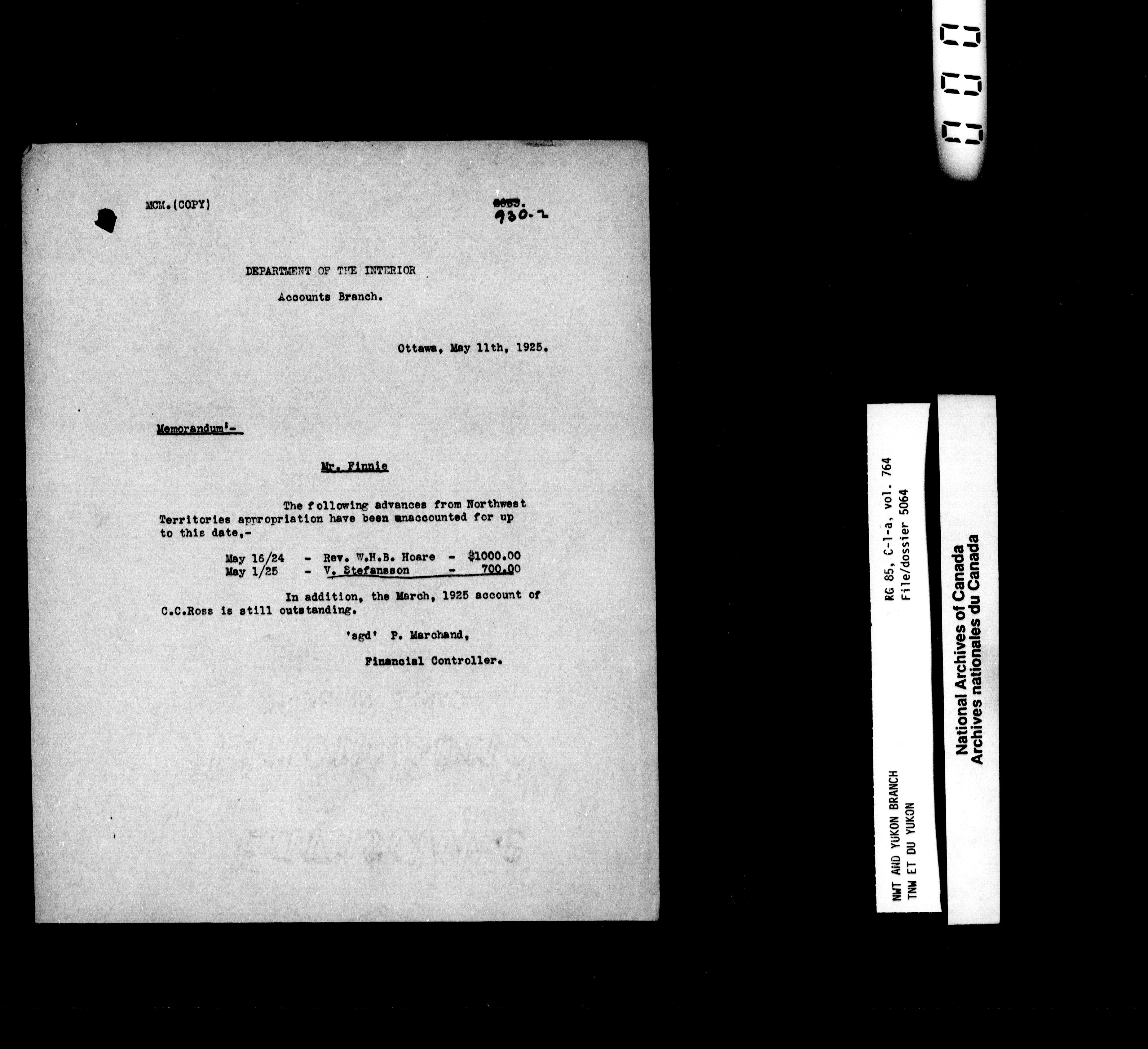 Department of Indian Affairs : Northwest Territories and Yukon Branch : T-13272