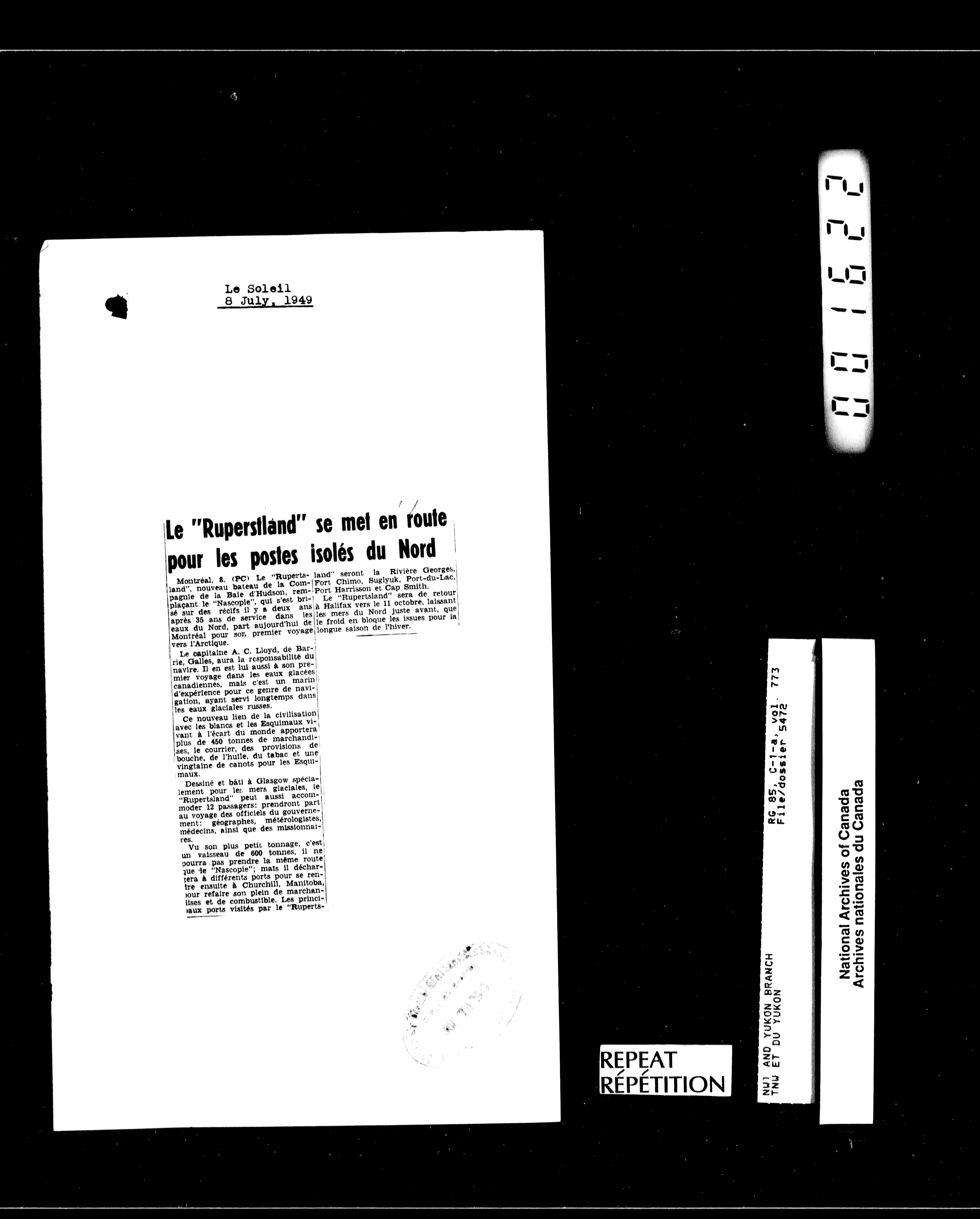 Department of Indian Affairs : Northwest Territories and Yukon Branch, Central Registry files - 13279