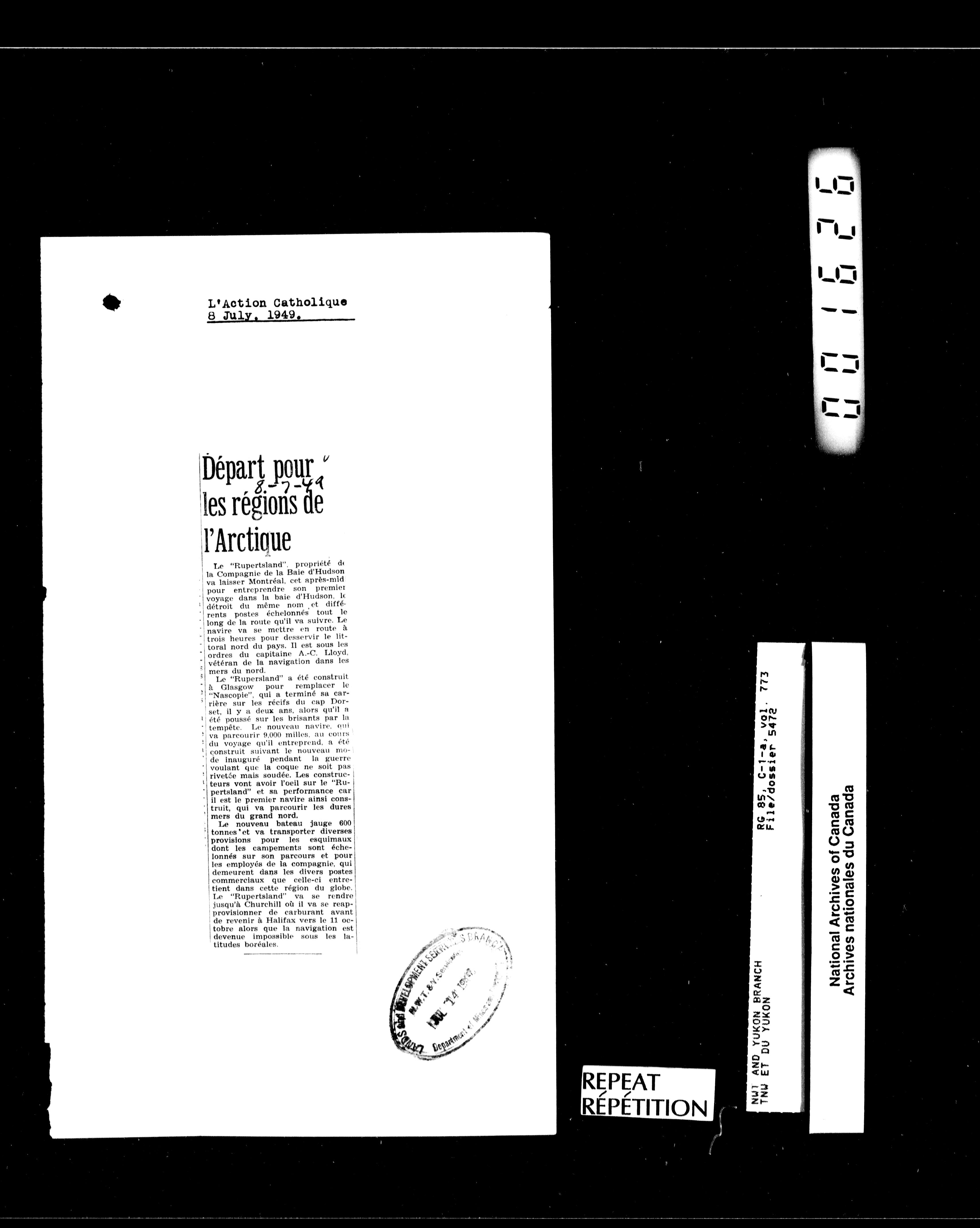 Department of Indian Affairs : Northwest Territories and Yukon Branch : T-13279