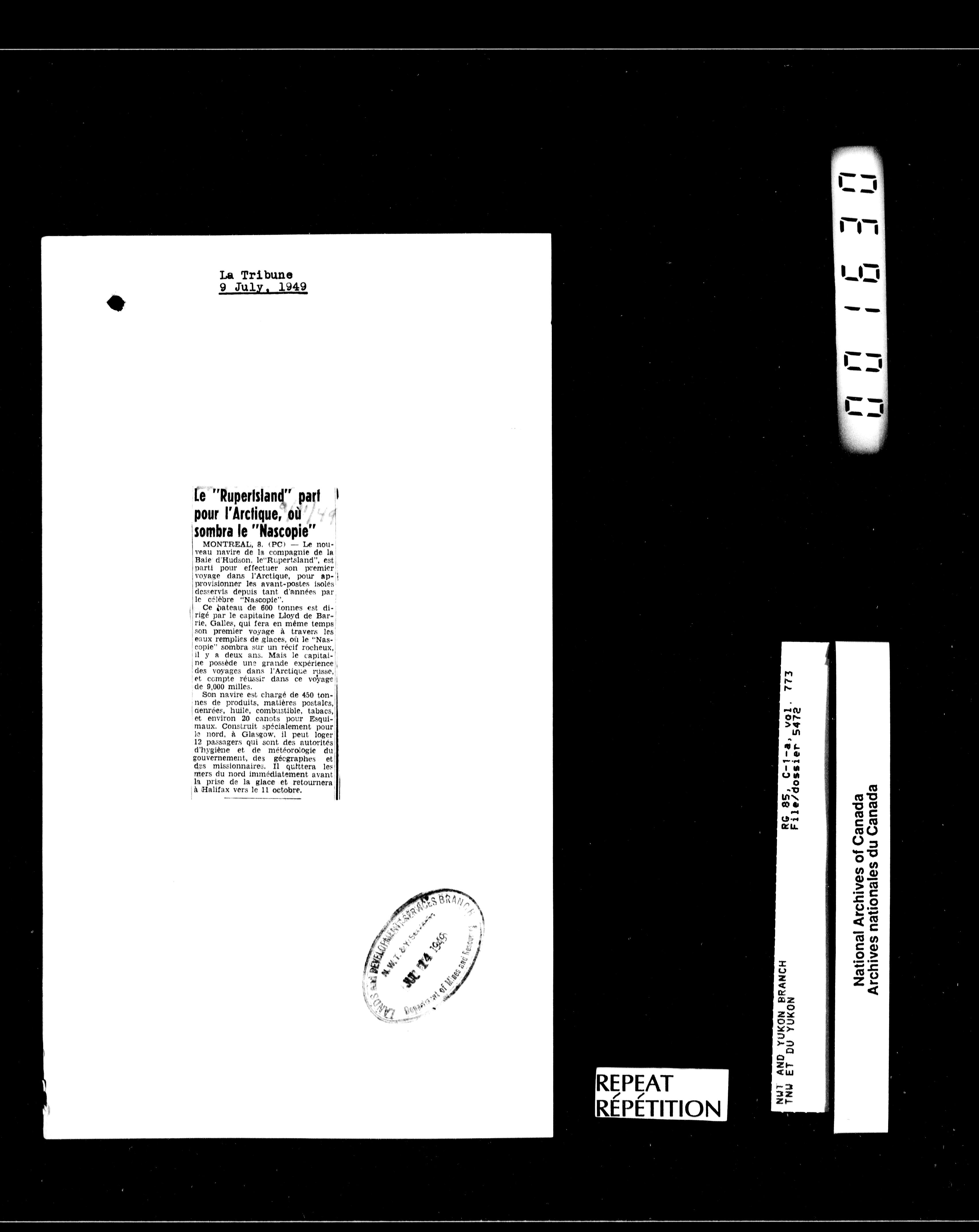 Department of Indian Affairs : Northwest Territories and Yukon Branch : T-13279