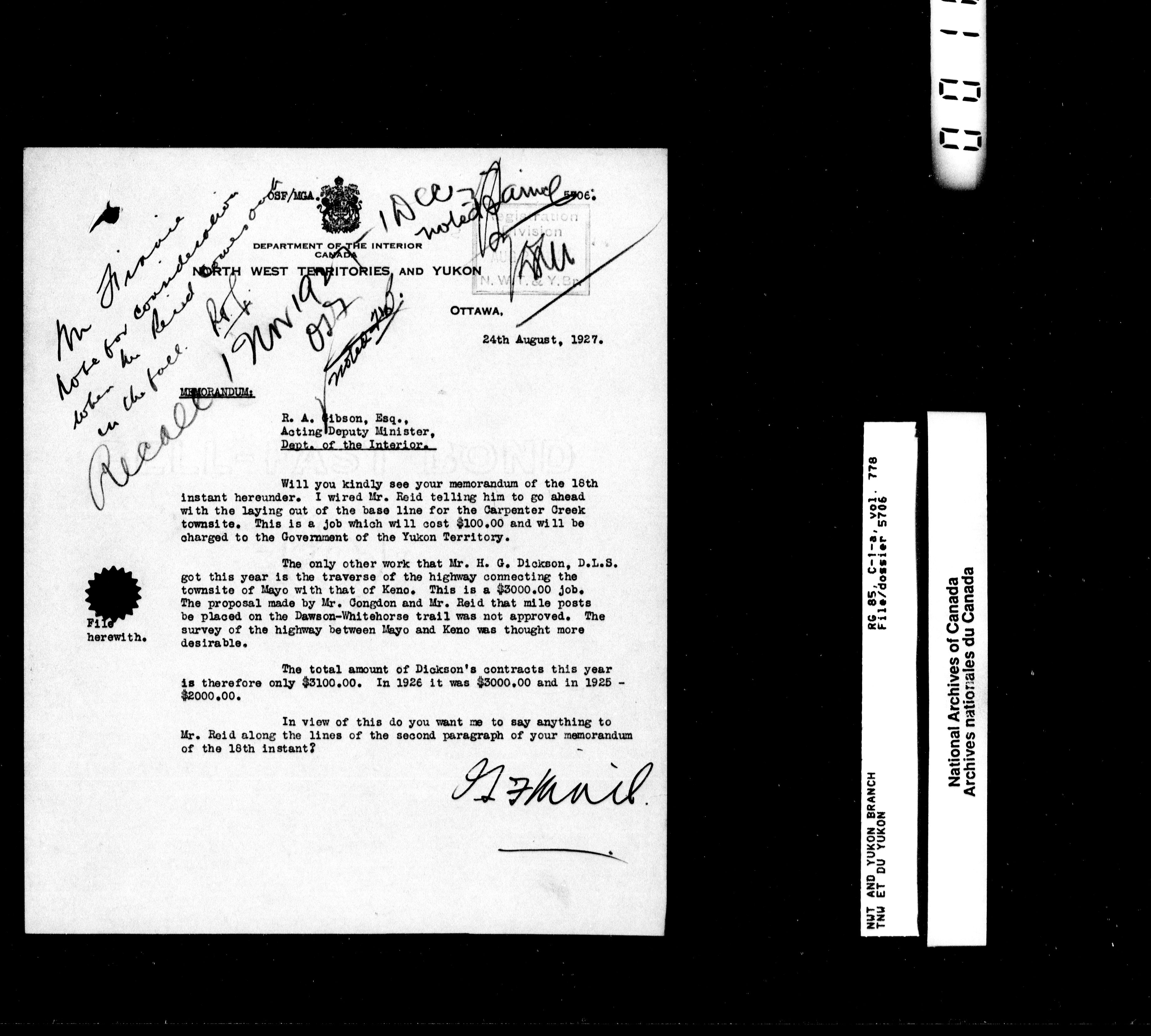 Department of Indian Affairs : Northwest Territories and Yukon Branch, Central Registry files - 13283