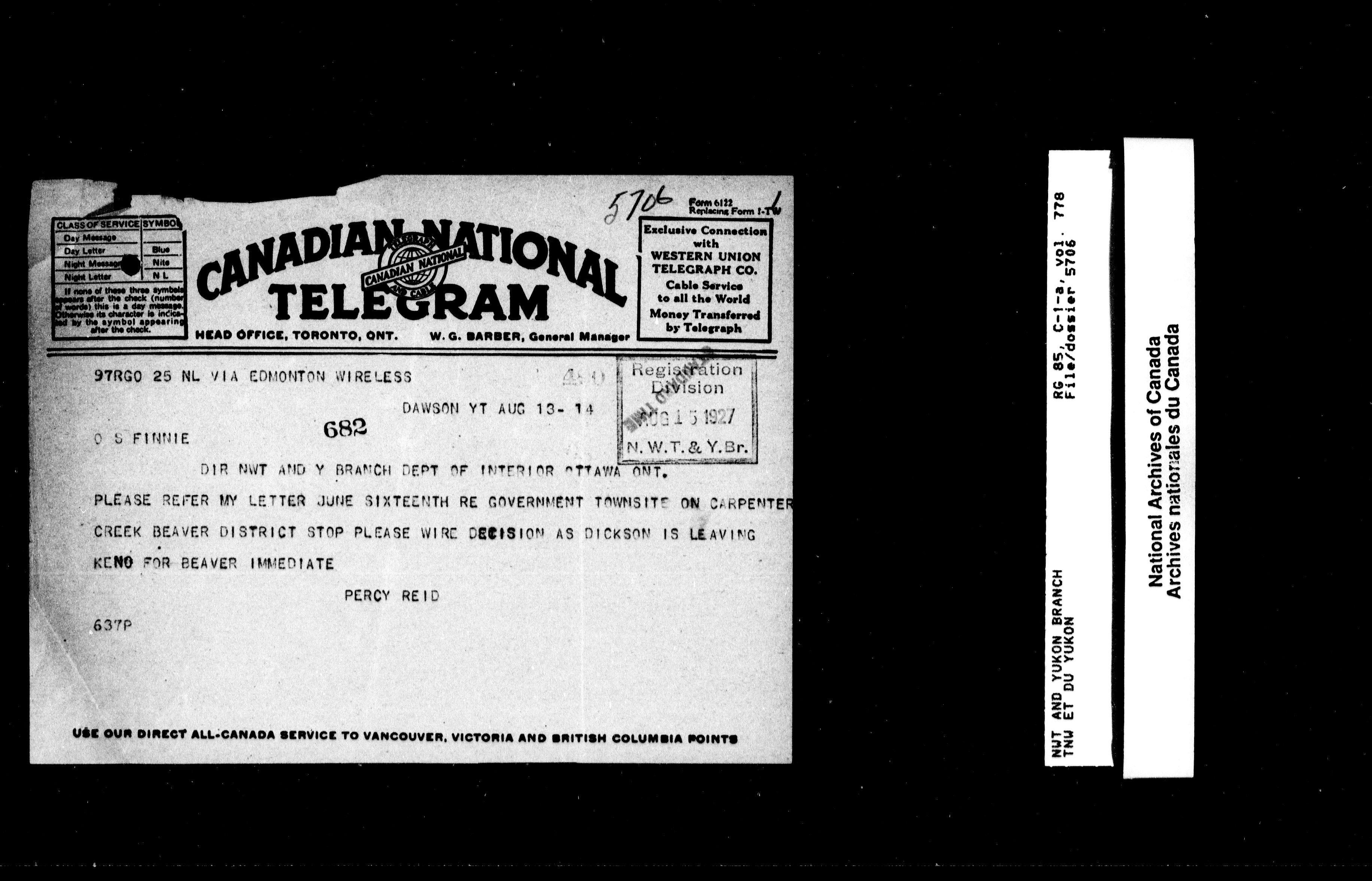 Department of Indian Affairs : Northwest Territories and Yukon Branch, Central Registry files - 13283